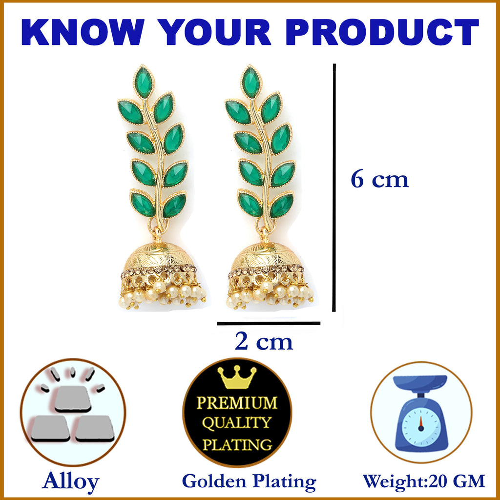Green Antique Leaf Shaped Gold-Plated Jhumka Earrings