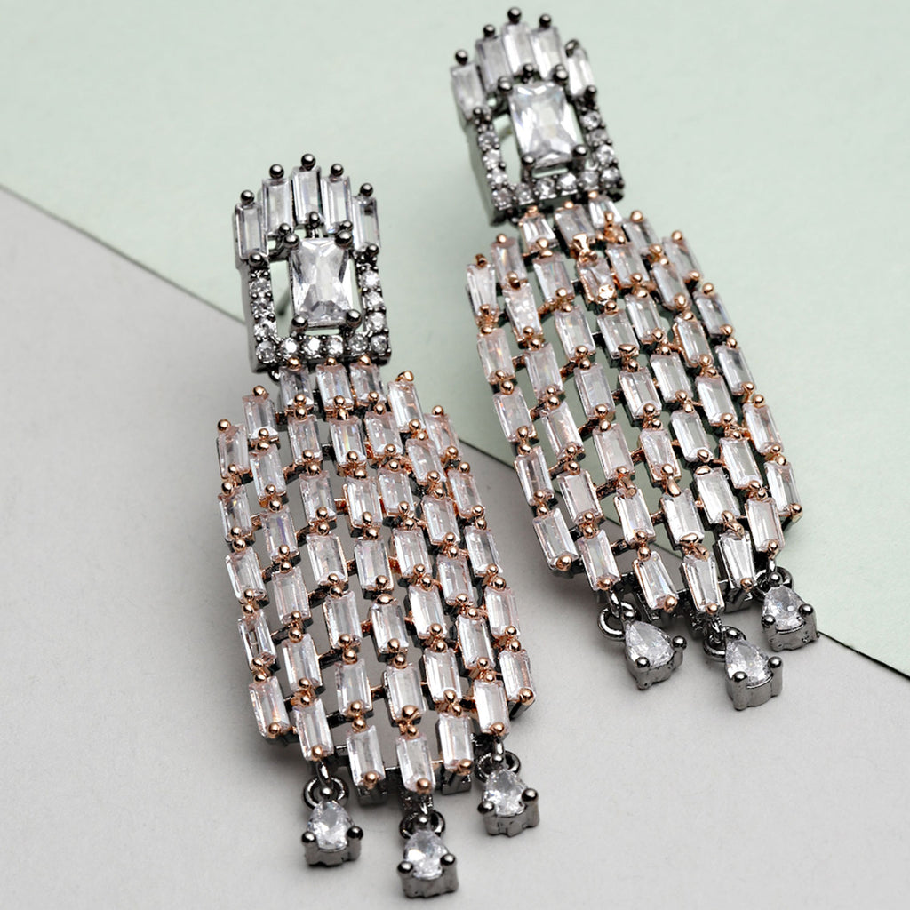 White Contemporary Rose Gold-Plated Gunmetal Toned Drop Earrings