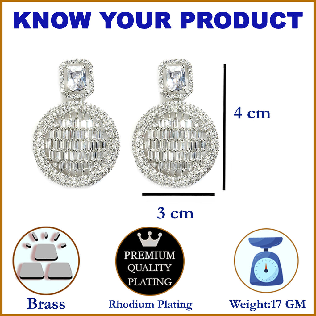 White American Diamond Studded Geometric Shaped Rhodium-Plated with Silver-Tone Drop Earrings