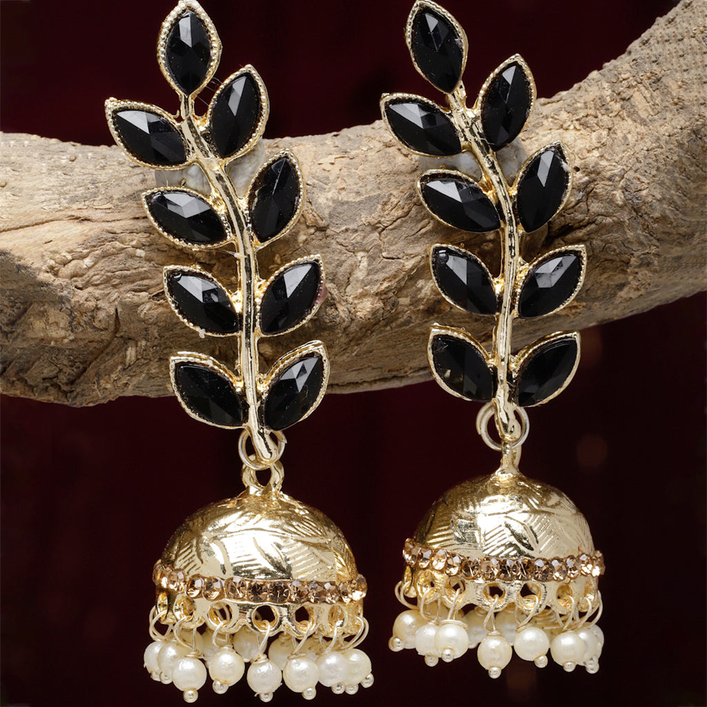 Gold-Plated Black & White Kundan studded Dome Shaped Meenakari Jhumka Earrings
