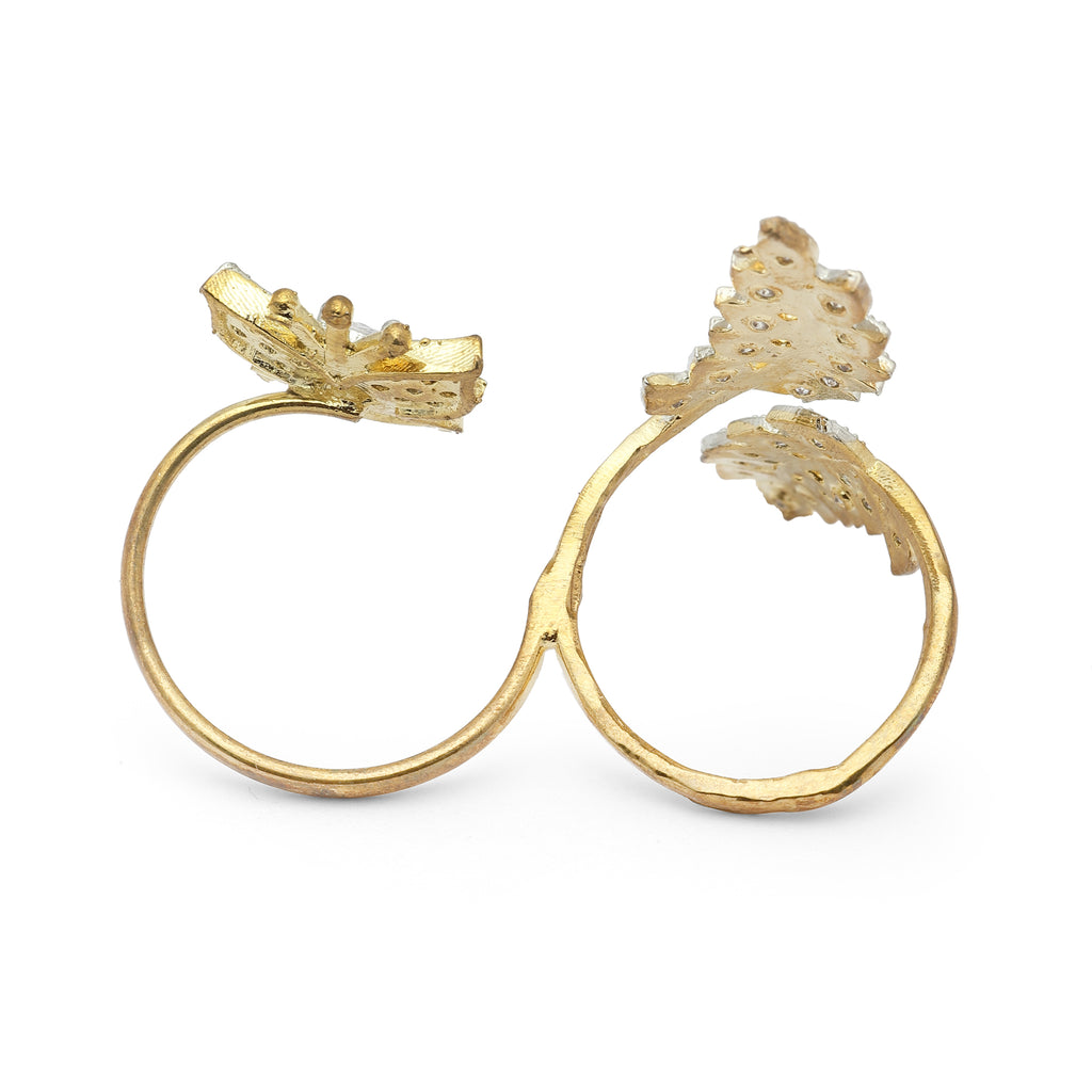Gold-Plated Butterfly & Leaf Shaped White Cubic Zirconia Studded Ring