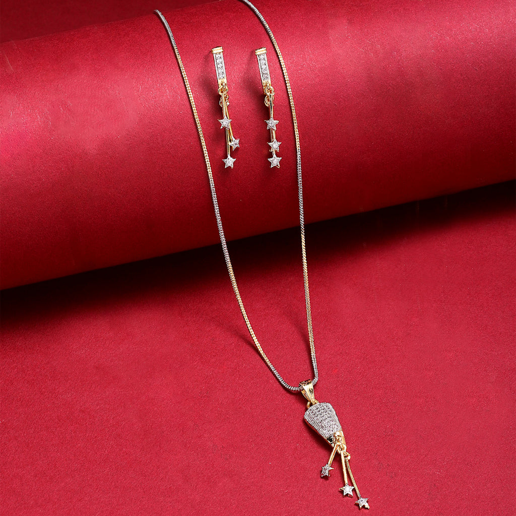 Elegant Design: This gold plated pendant set features a perfect blend of modern charm and celestial beauty. The matching earrings showcase delicate dangling star charms, adding a graceful movement to your look.