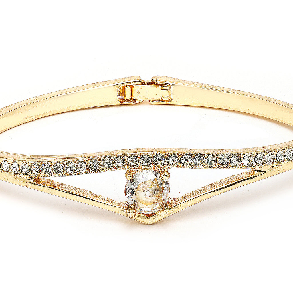 Elegant Design: This Gold-plated Cuff bracelet showcases sparkling white Cubic Zirconia studded, adding a touch of sophistication to your look.