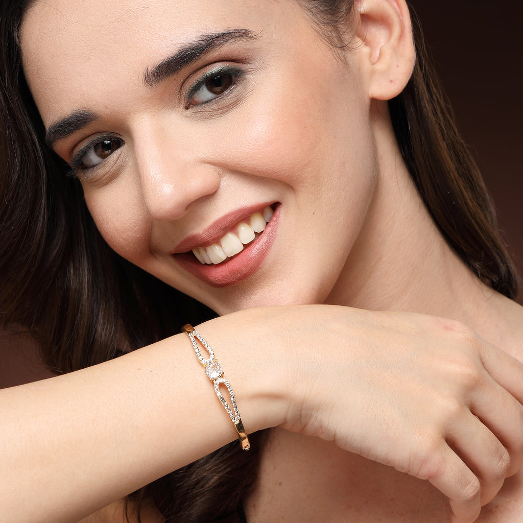 Elegant Design: This Gold-plated Cuff bracelet showcases sparkling white Cubic Zirconia studded, adding a touch of sophistication to your look.