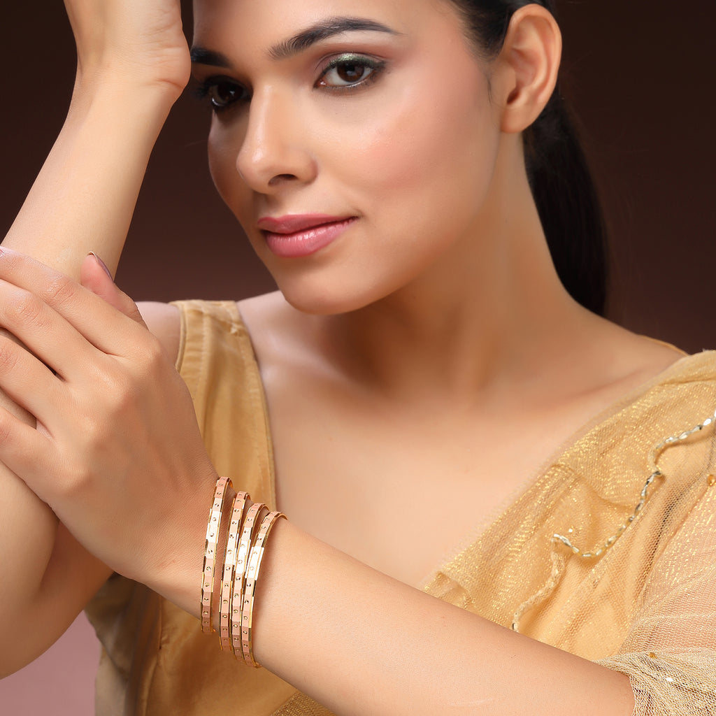 Elegant Design :The gold plated rose gold toned classic engraved design bangles offers a versatile look that complements both traditional and contemporary attire.