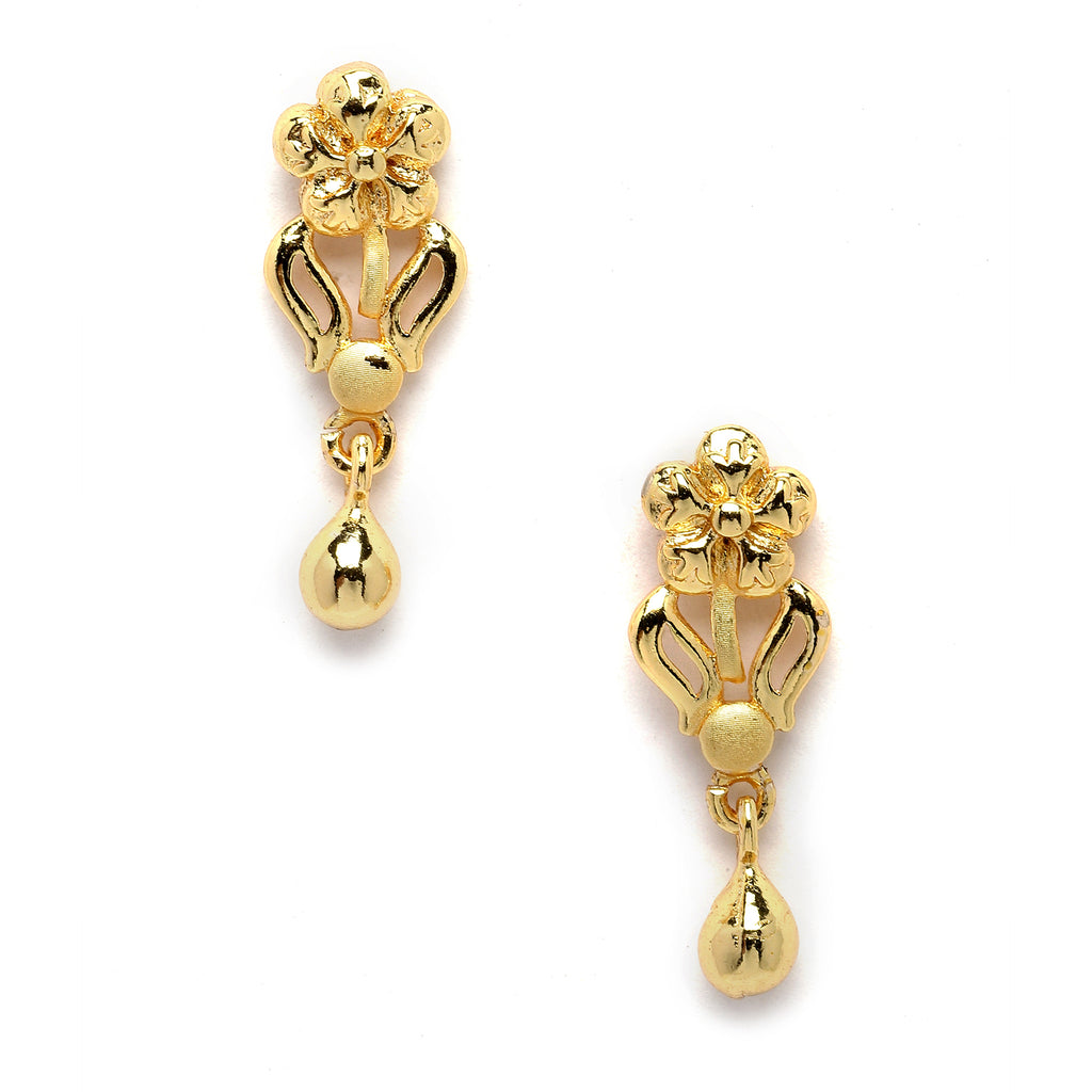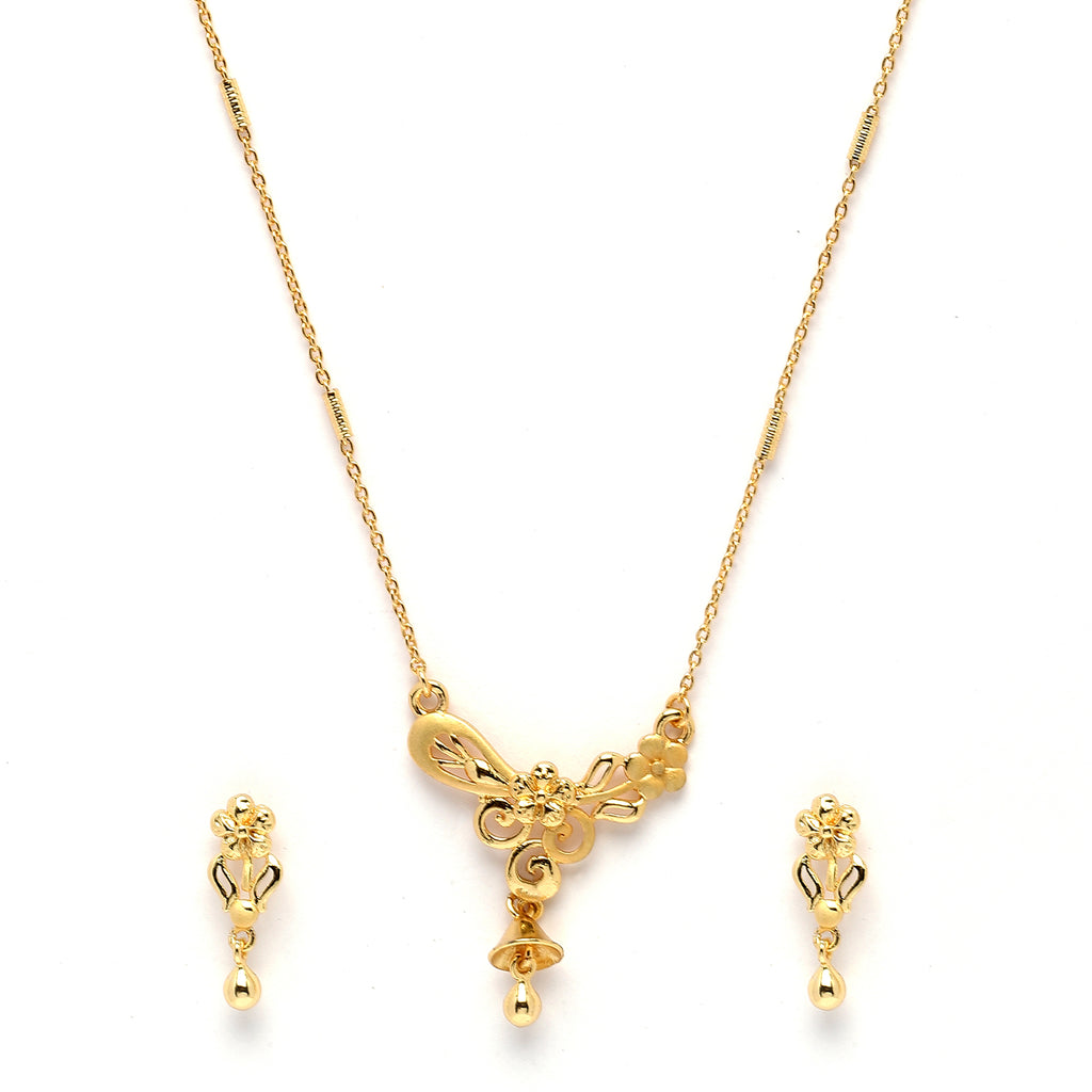 Gold-Plated Floral Design Mangalsutra with Earrings details, mangalsutra secured with lobster claw closure and earrings secured with post and back closure.