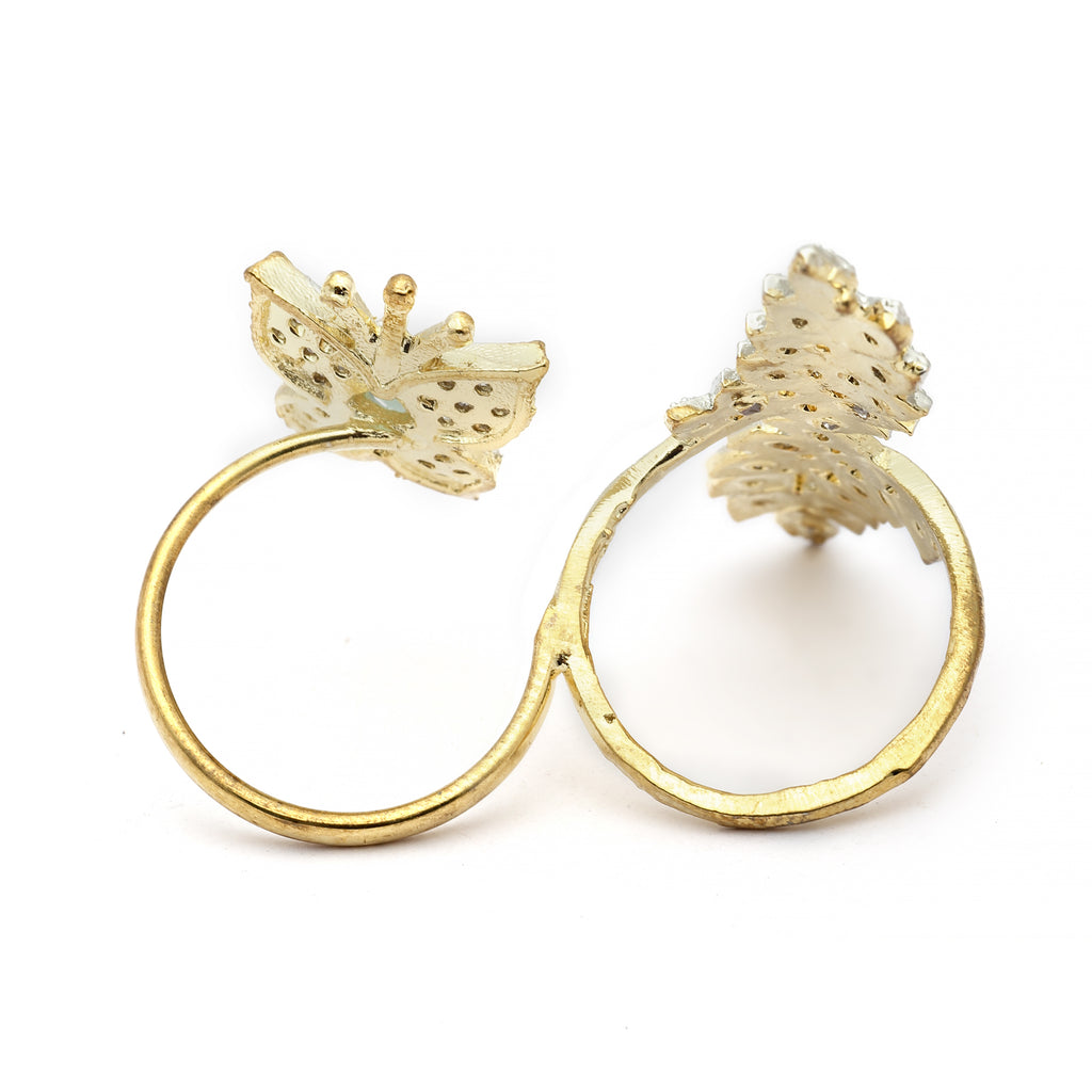 • Elegant Design: This gold-plated adjustable ring features a stunning leaf and flower design, encrusted with high-quality Cubic Zirconia stones and a radiant green centerpiece. A perfect blend of nature-inspired elegance and modern craftsmanship