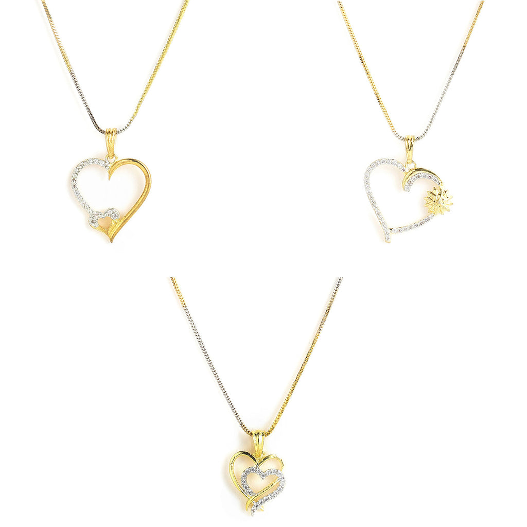 Gold-Plated Heart Shaped White Cubic Zirconia Stone Studded Pendant Combo