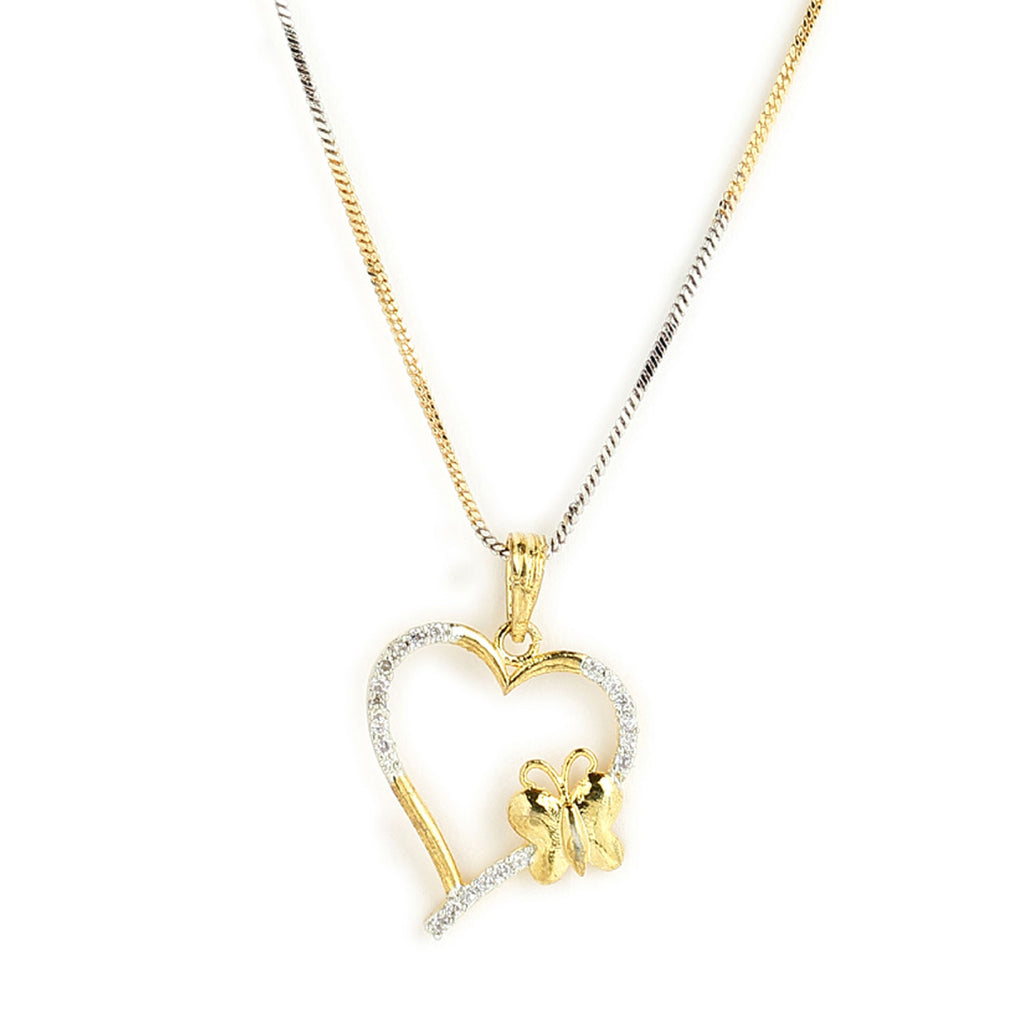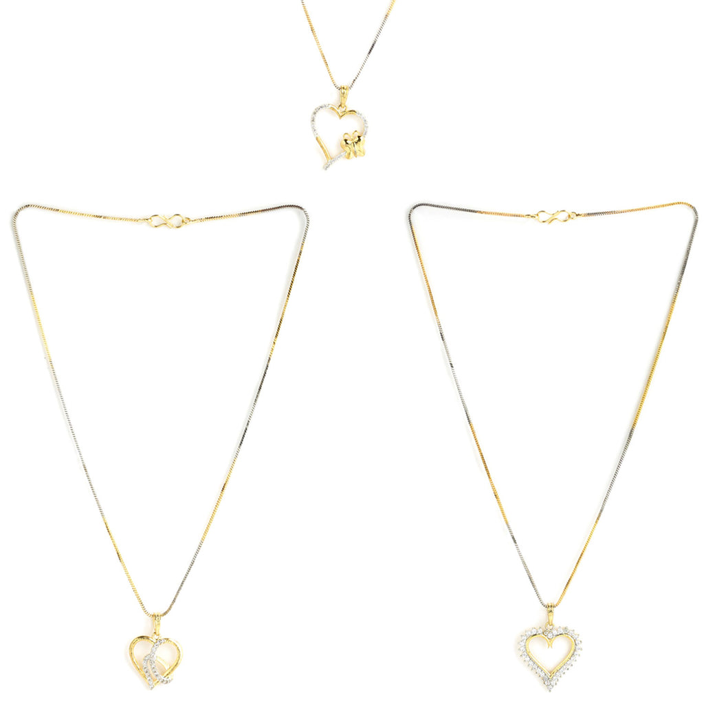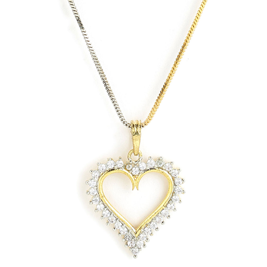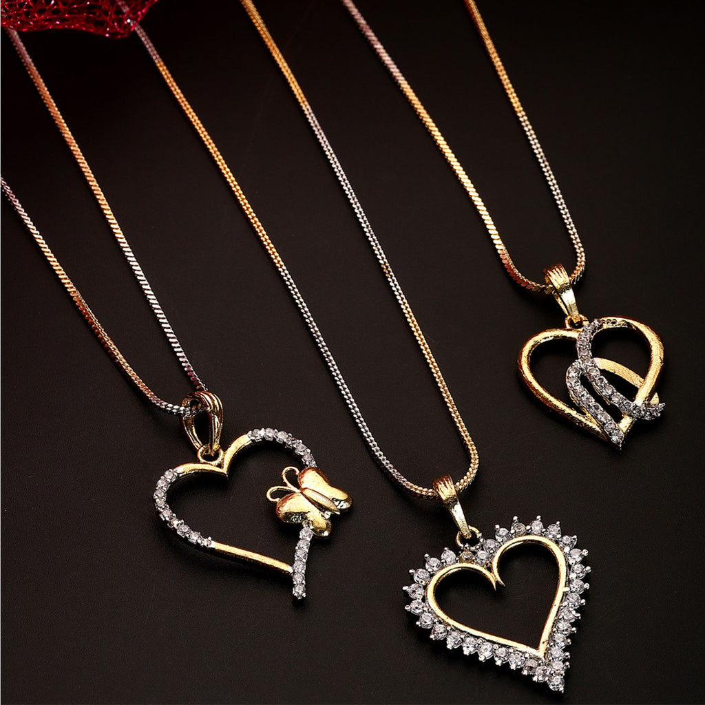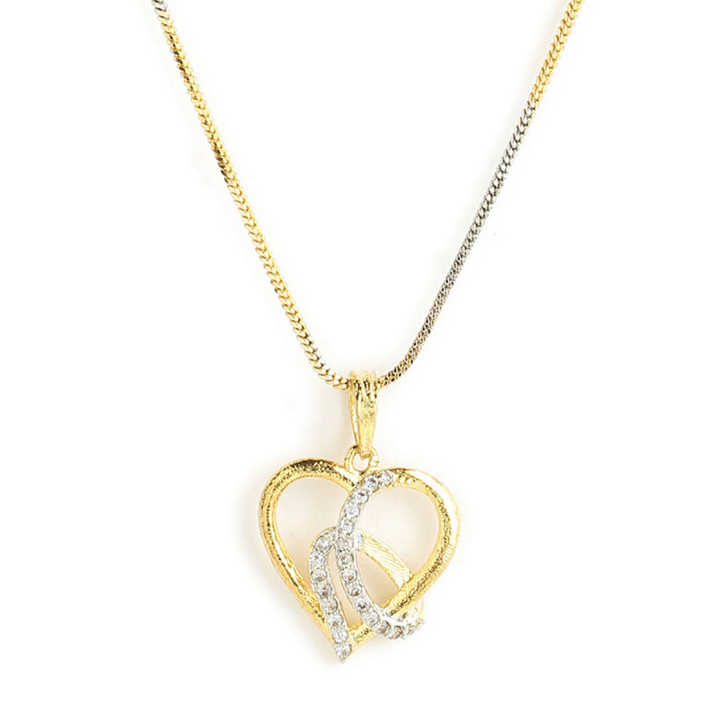 Gold-Plated Heart Shaped White Cubic Zirconia Stone Studded Pendant Combo