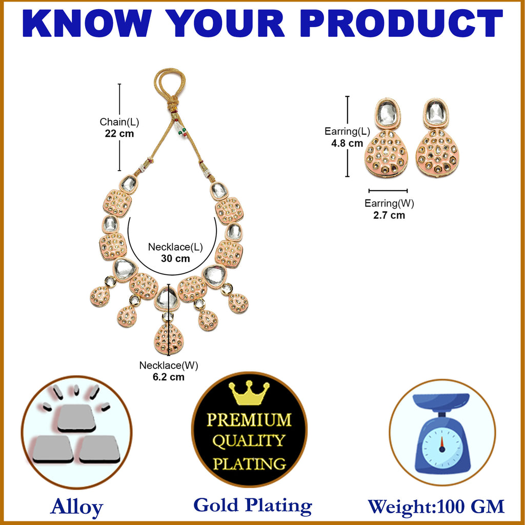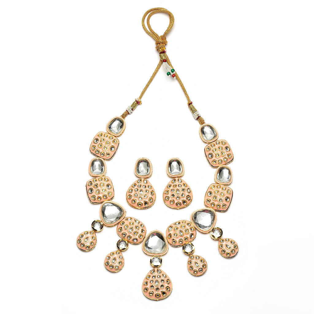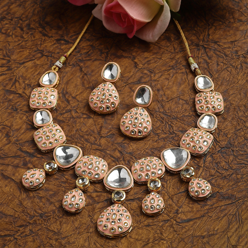 Gold-Plated Kundan Studded Pink Enamelled Necklace With Earrings Jewellery Set