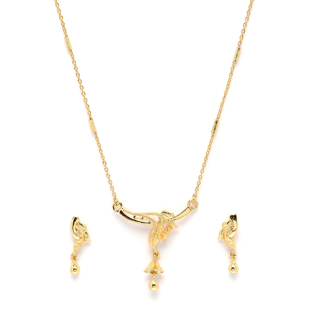 Gold-Plated Leafy Design Mangalsutra with Earrings
