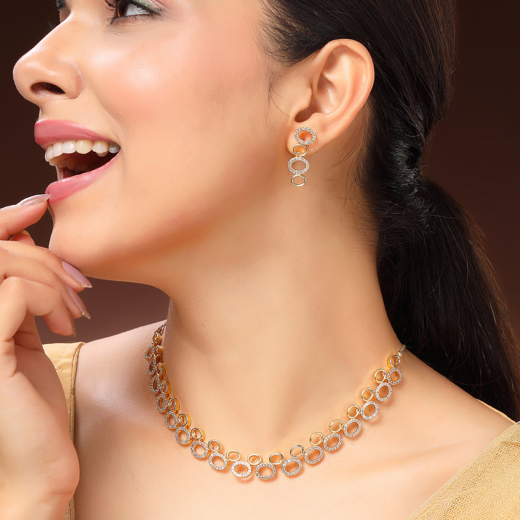 Elegant Design: This Gold-plated necklace set boasts a sophisticated contemporary design, exuding timeless elegance.