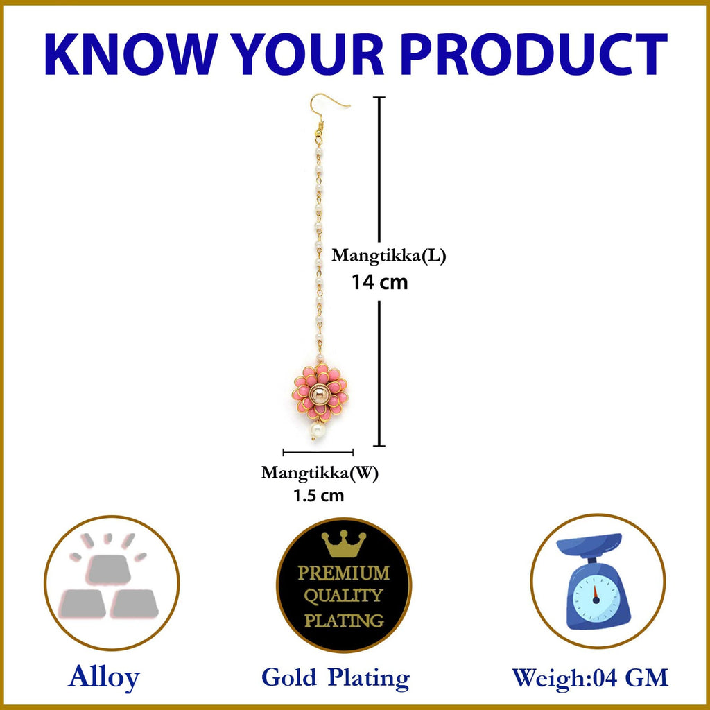 • Elegant Design: This gold plated set features handcrafted floral Maang Tikka, featuring vibrant artificial flowers accented with delicate pearl strands.