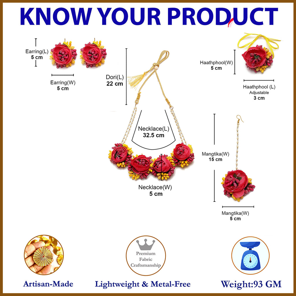 What You Get:- 1 Pcs of Necklace, 1 Set of Earrings, 2 Pcs Haathphool, 1 Pcs MaangTikka