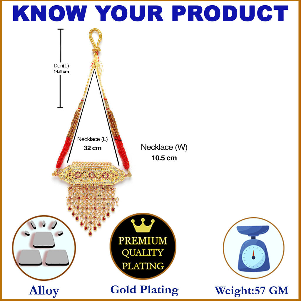 This jewellery set consists of a necklace. Gold-Plated pink & white kundan studded & beaded choker meenakari necklace, has secured with a adjustable drawstring closure.