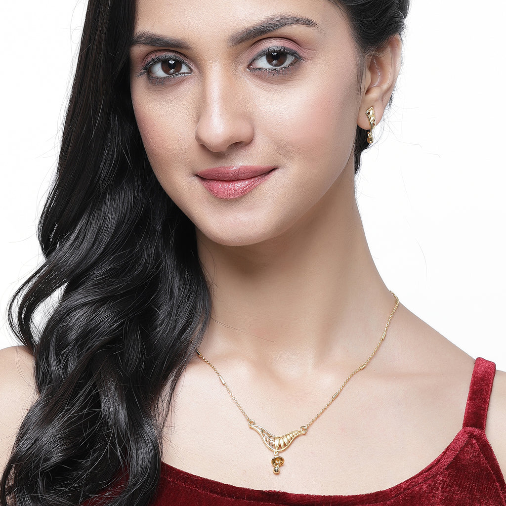 Gold-Plated Quirky Design Mangalsutra with Earrings details, mangalsutra secured with lobster claw closure and earrings secured with post and back closure.