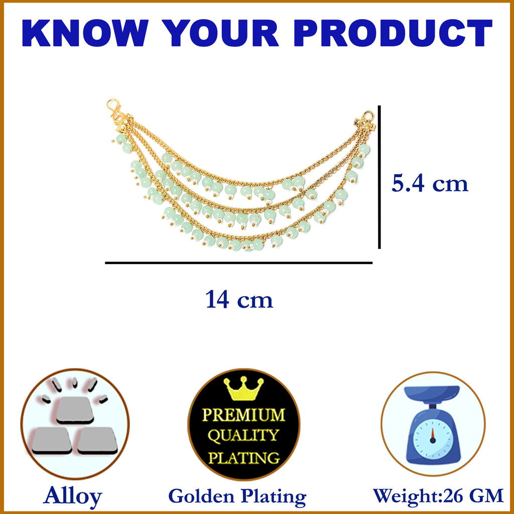 Gold-Plated Sea Green Pearls studded Ear Chains