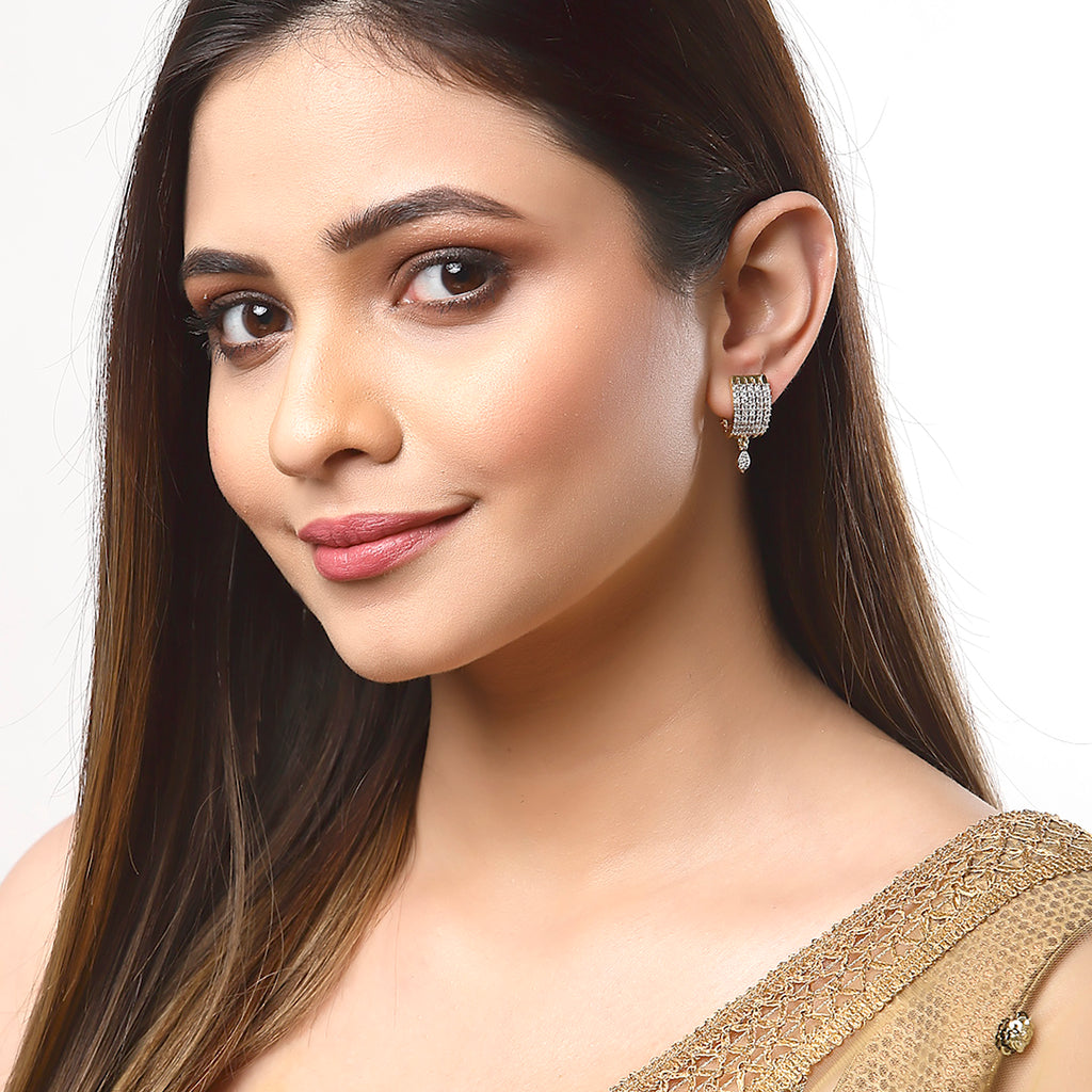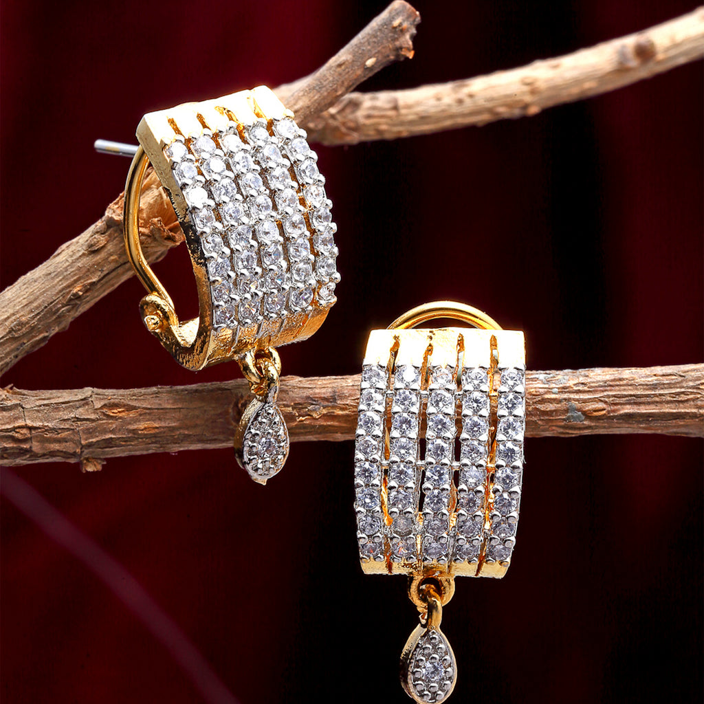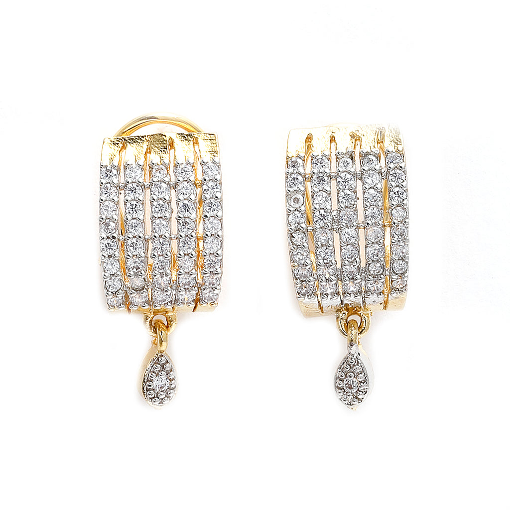 White and gold-toned teardrop shaped studs, gold-plated, has american diamond. Secured with a post and back.