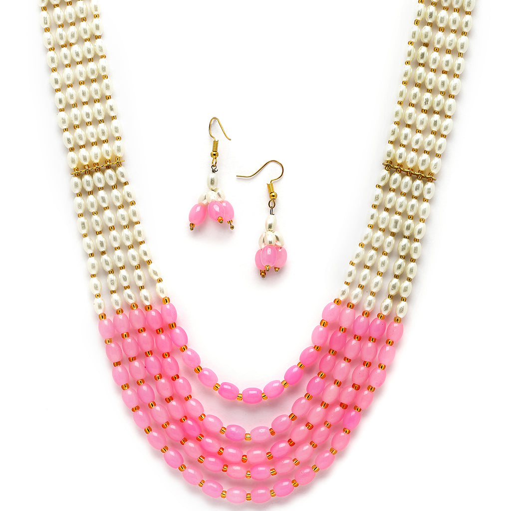 Gold-Plated White and Pink Pearl Beaded Layered Jewellery Set