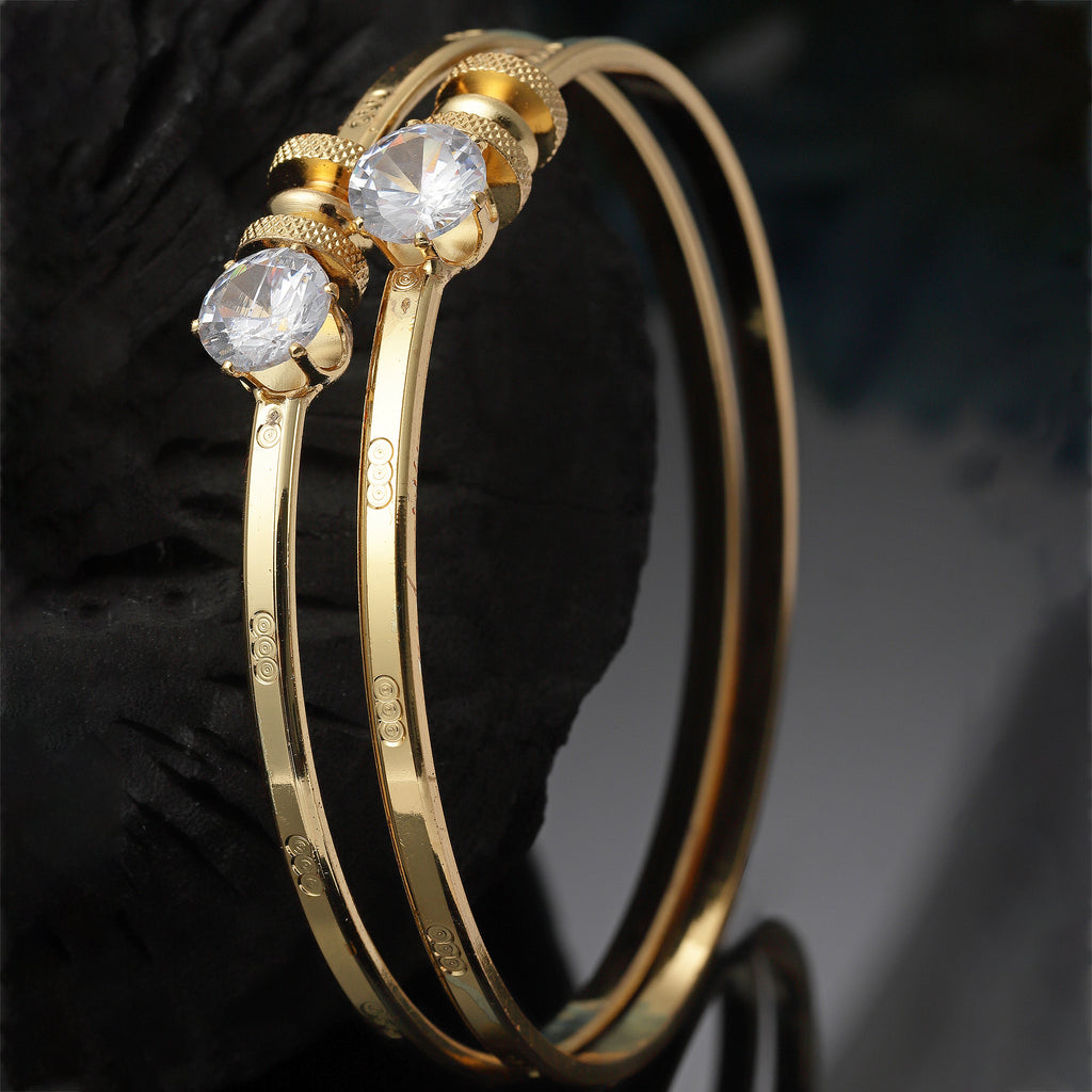 Elegant Design: he band is delicately engraved with intricate patterns, complemented by sparkling stones, making these bangles a must-have for all.