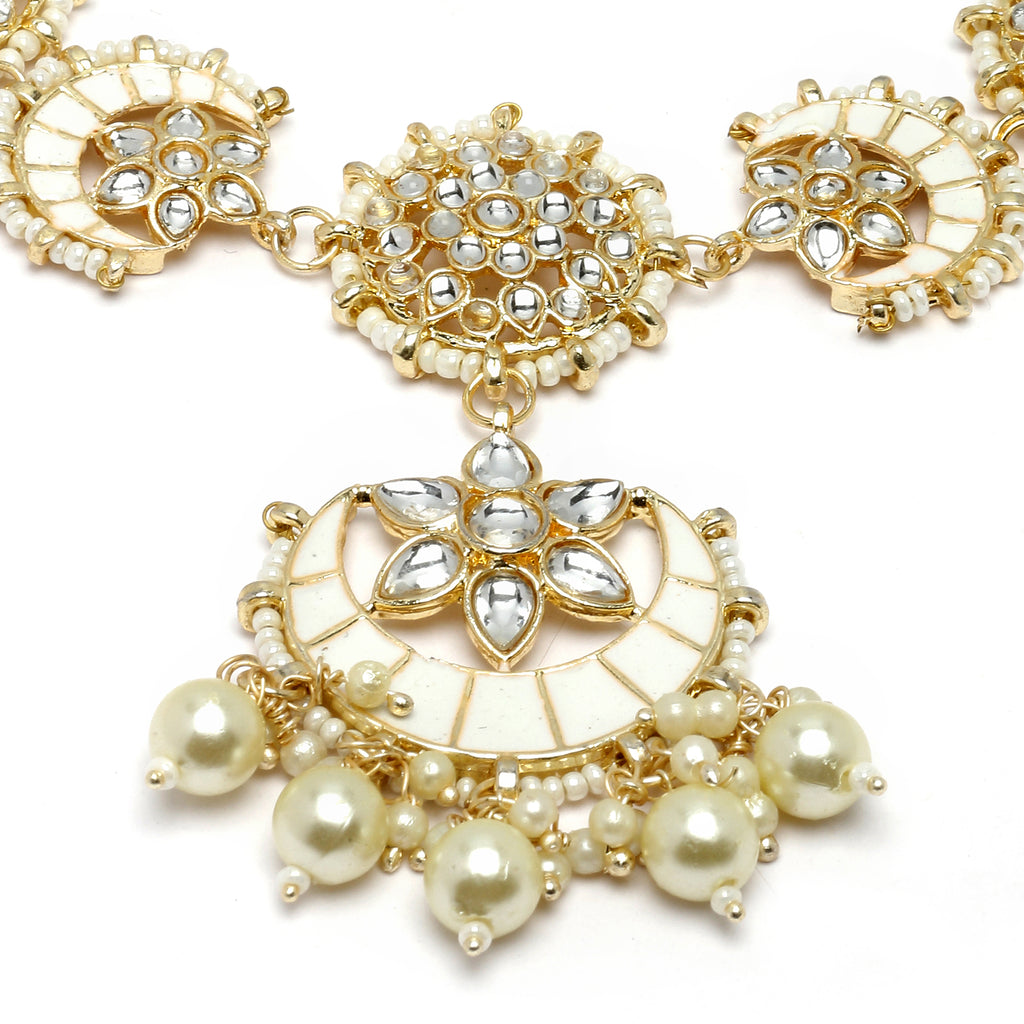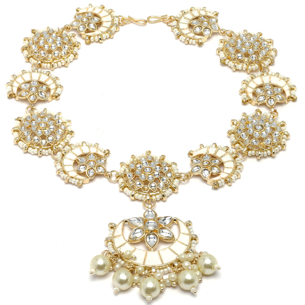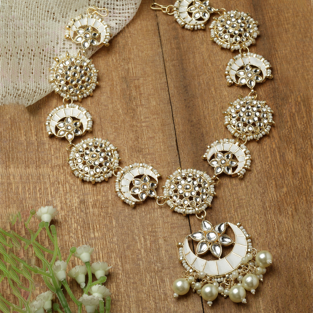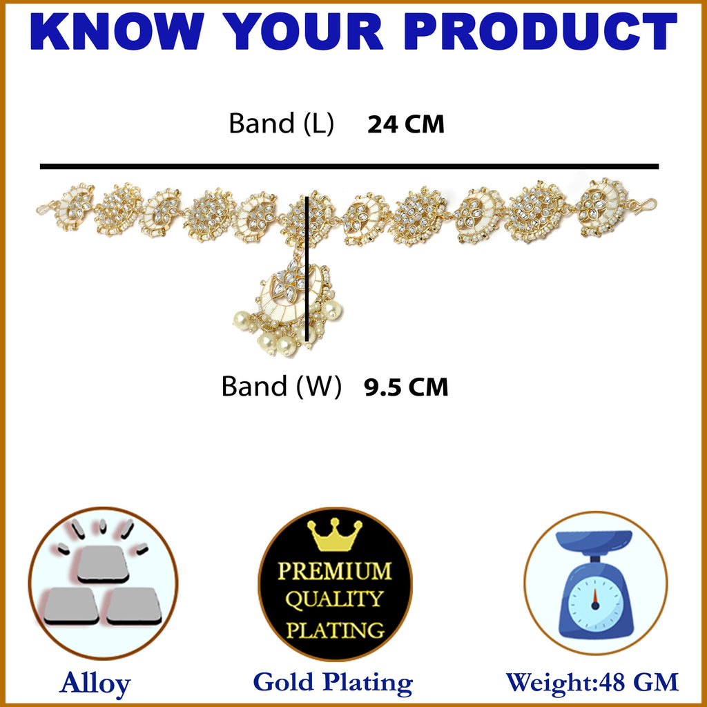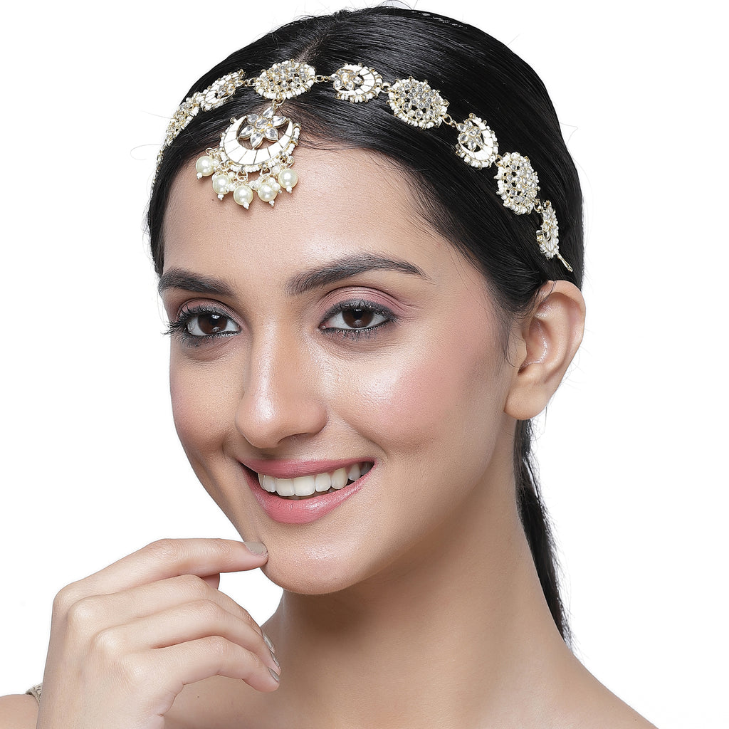 Elegant Design: .The alternating full & half pattern of floral and circular motifs gracefully follows the hairline, offering a structured yet delicate aesthetic