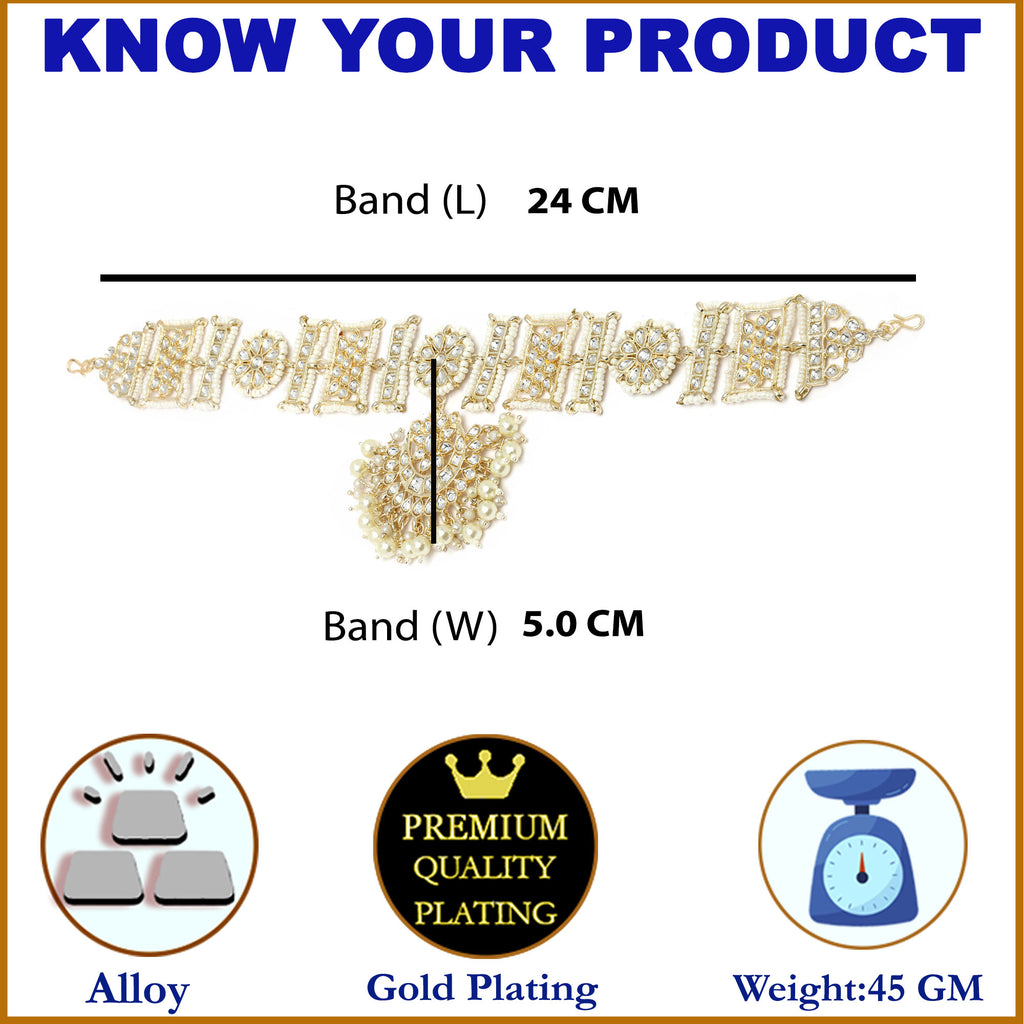 Elegant Design: .The alternating pattern of floral and circular motifs gracefully follows the hairline, offering a structured yet delicate aesthetic
