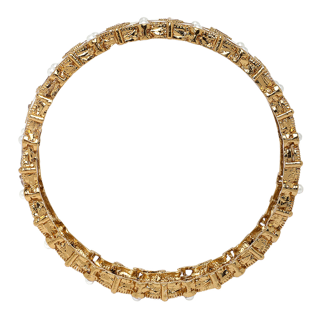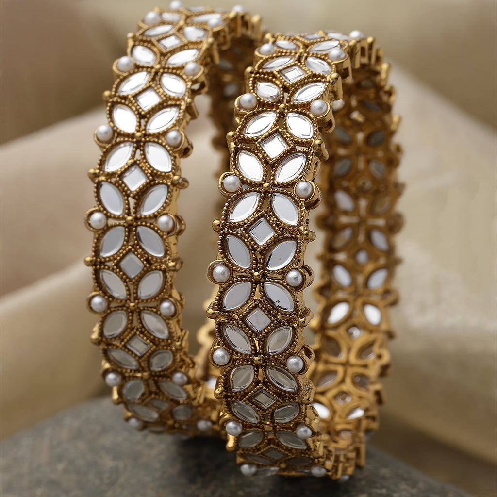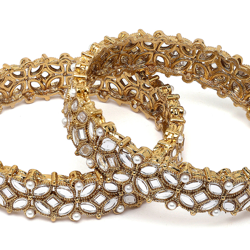 Gold-Plated White Kundan studded Designer Floral Style Bangles Jewellery Set (Set Of 2)