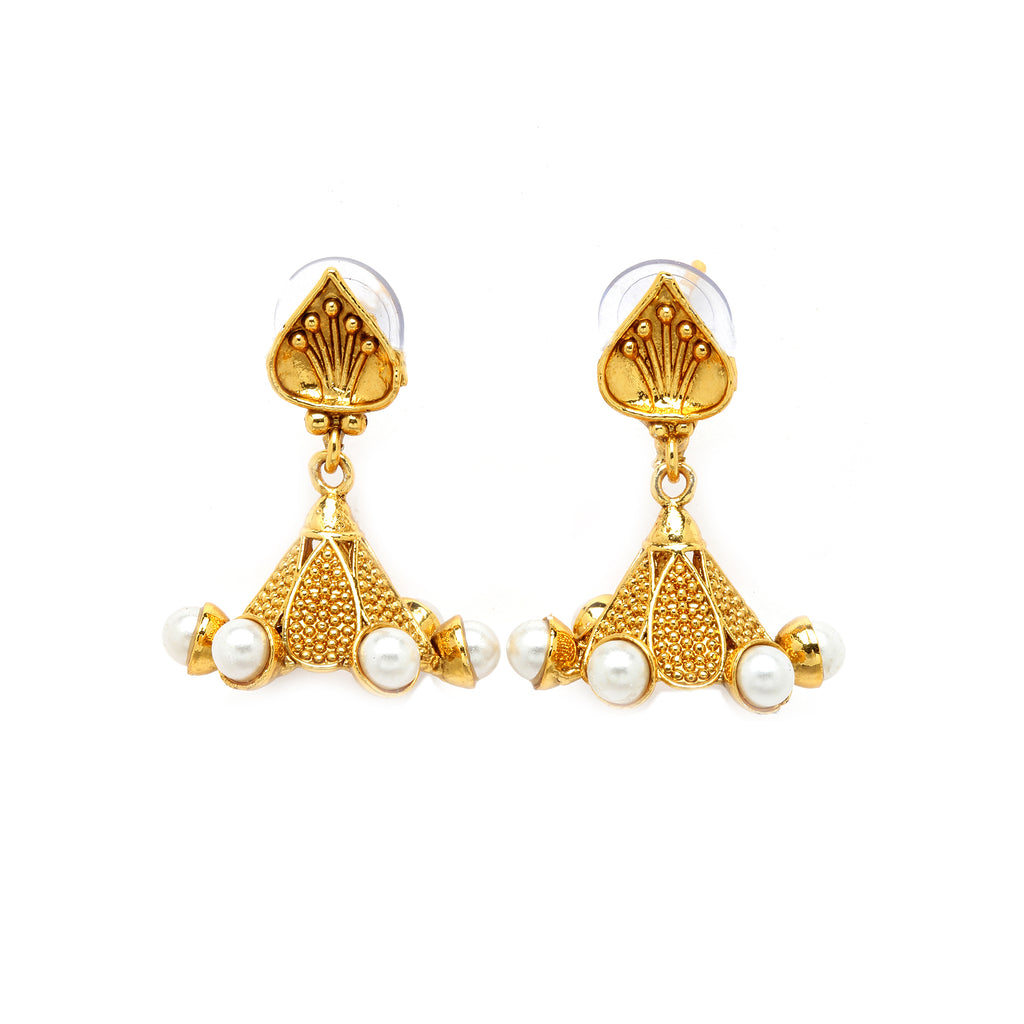This jewellery set consists of a necklace and a pair of earrings. Gold-Plated White Pearls Studded And Beadded necklace, secured with a Drawstring closure. A pair of matching drop earrings, each secured with Post and Back closure.