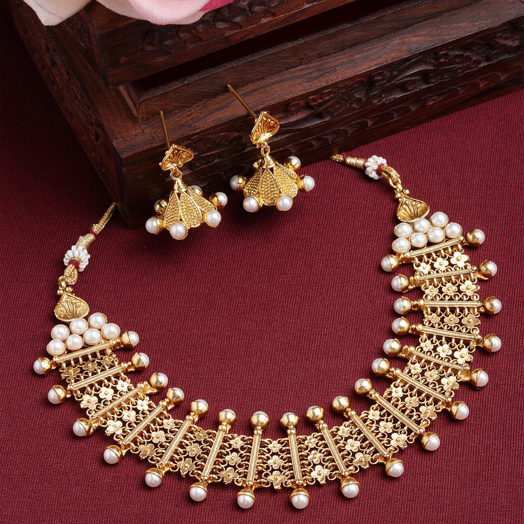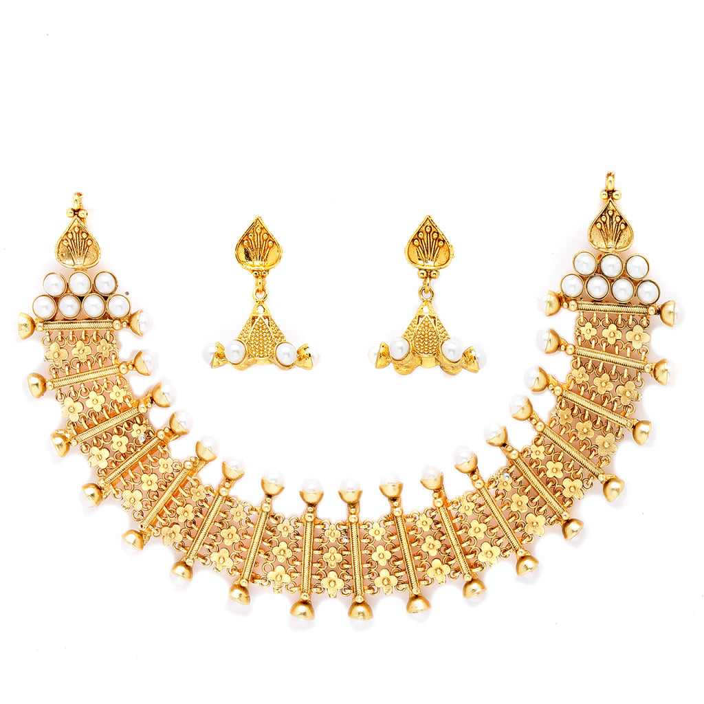 Gold-Plated White Pearls Studded and Beaded Jewellery Set