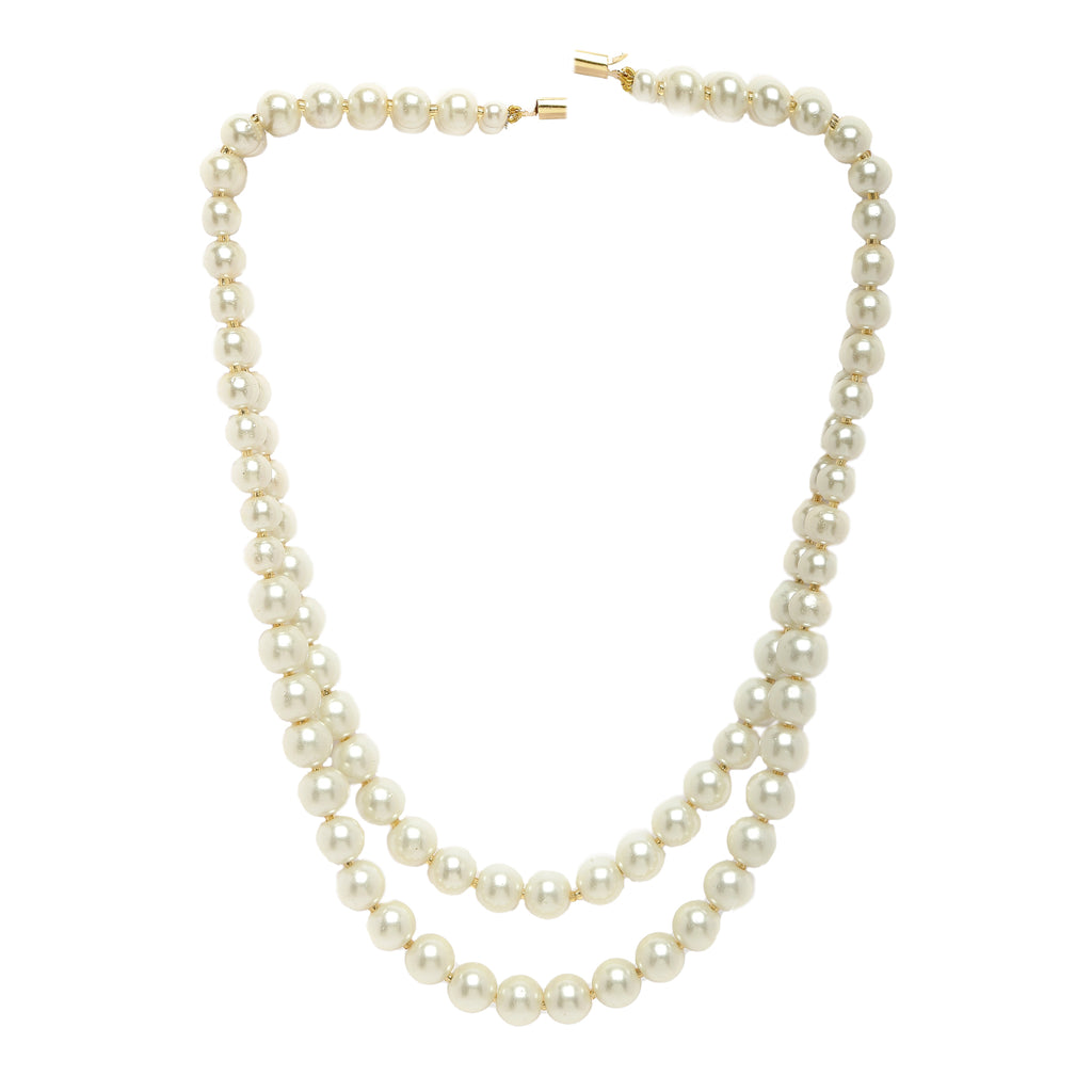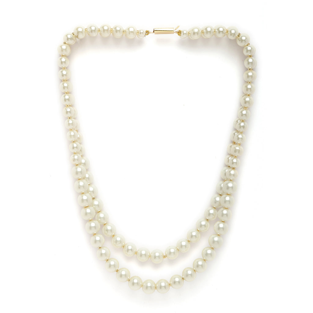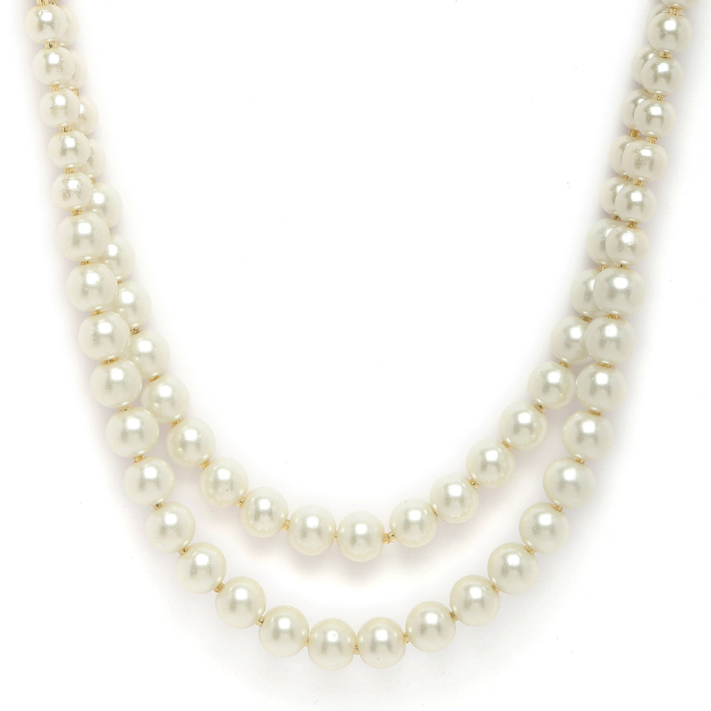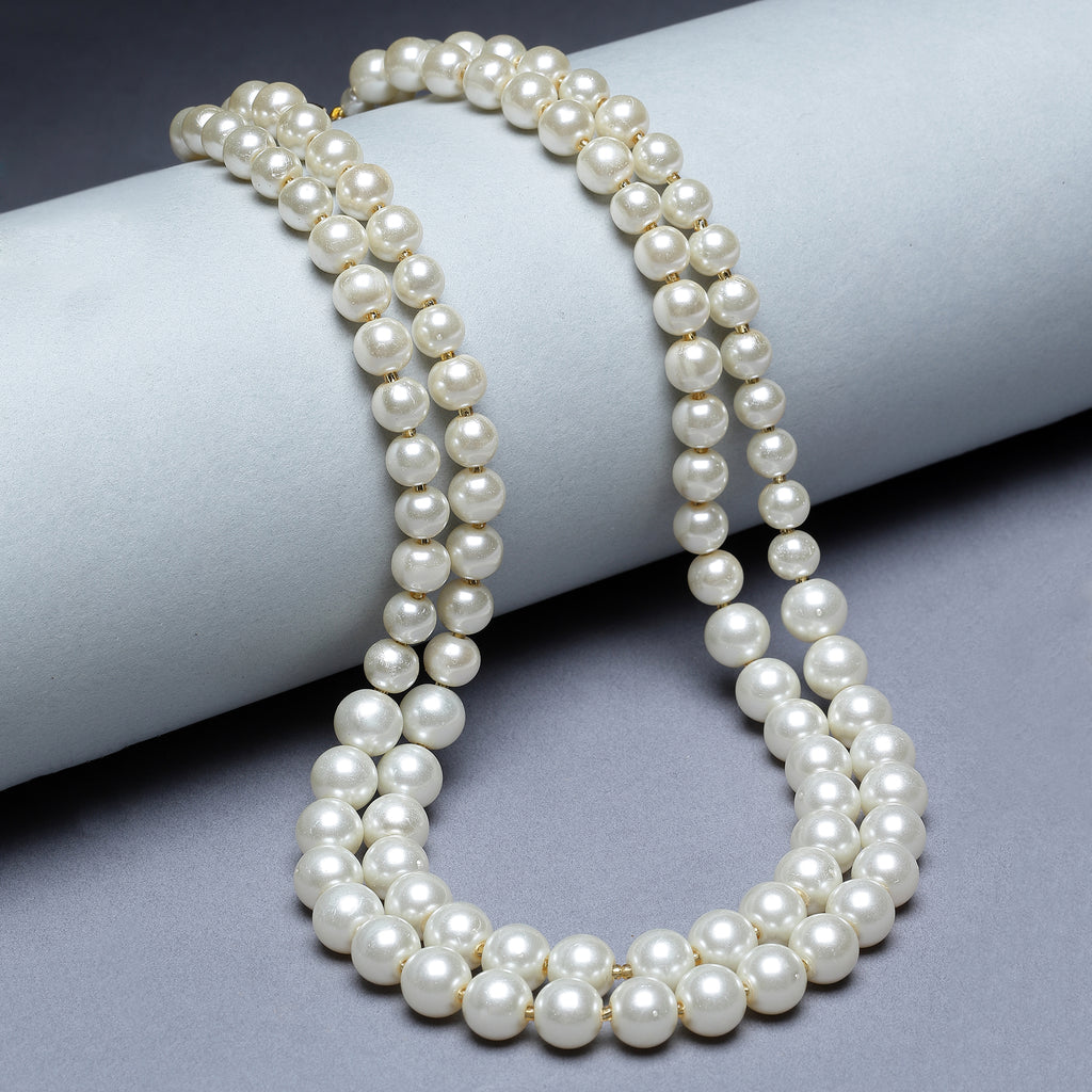 This jewellery set consists of a necklace. Gold-Plated white pearls studded layered necklace, has secured with a hook closure.