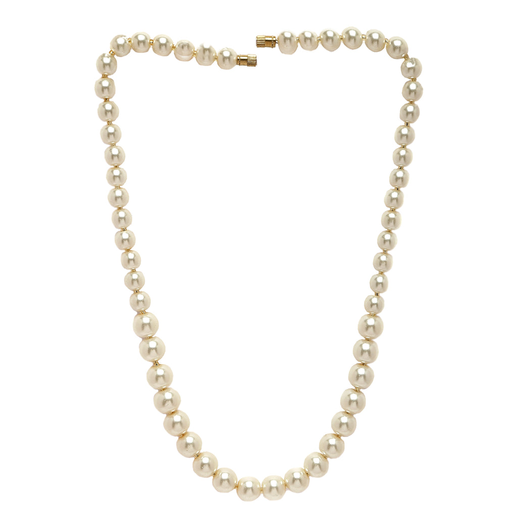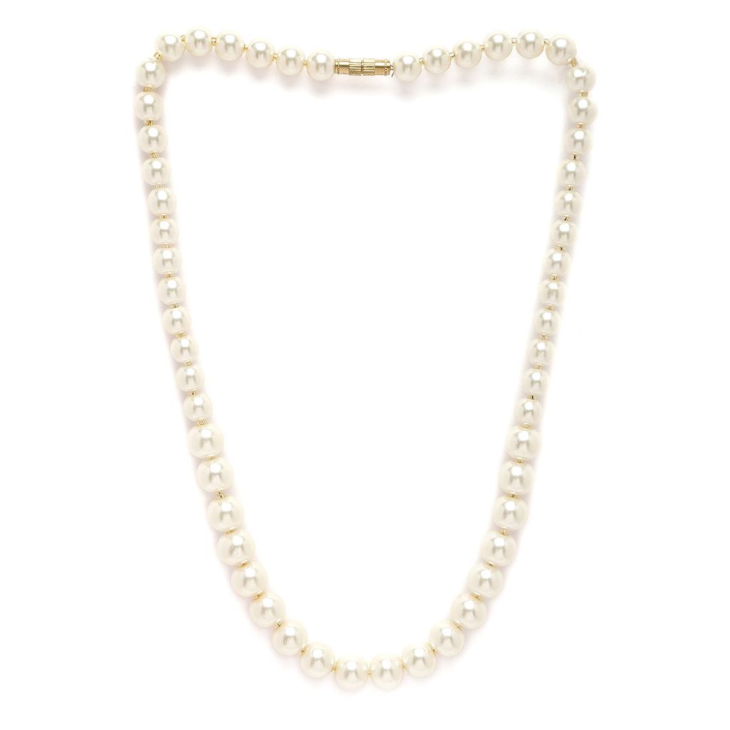This jewellery set consists of a necklace. Gold-Plated white pearls studded necklace, has secured with a barrel closure.