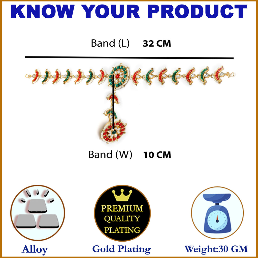 Elegant Design: Traditional crescent-motif design, enriched with intricate Kundan and pearl embellishments, are symmetrically arranged, creating a regal and festive look.