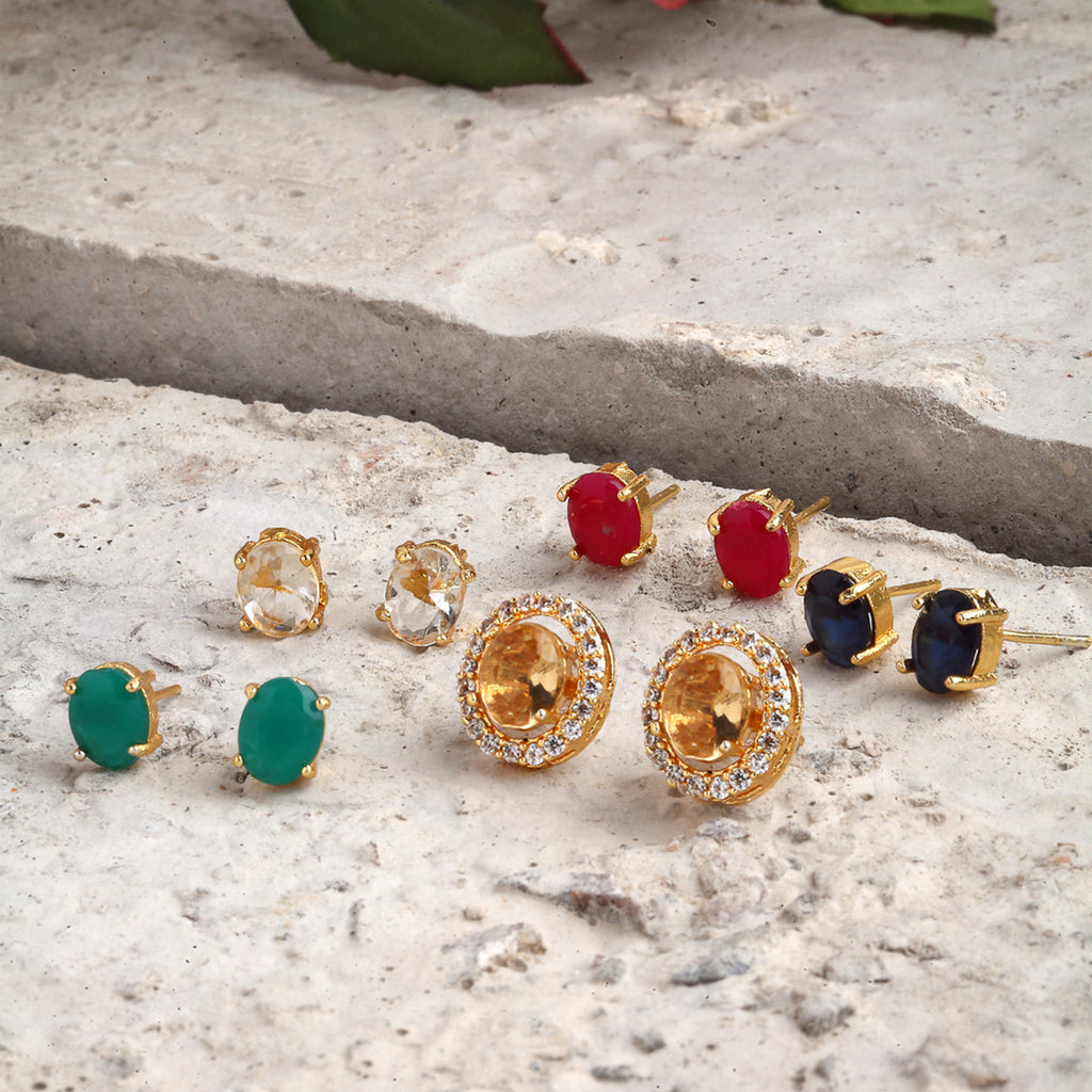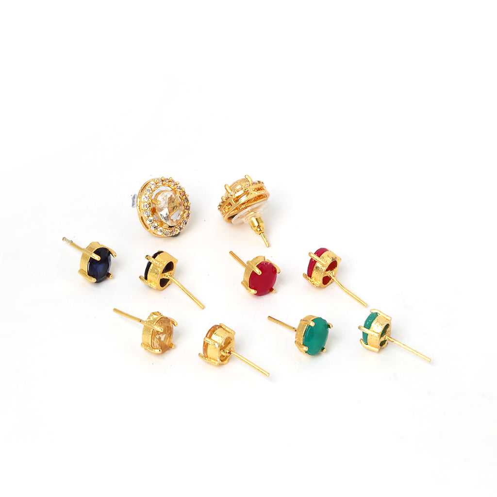 Set of 5 Gold-Toned Oval Studs Earrings