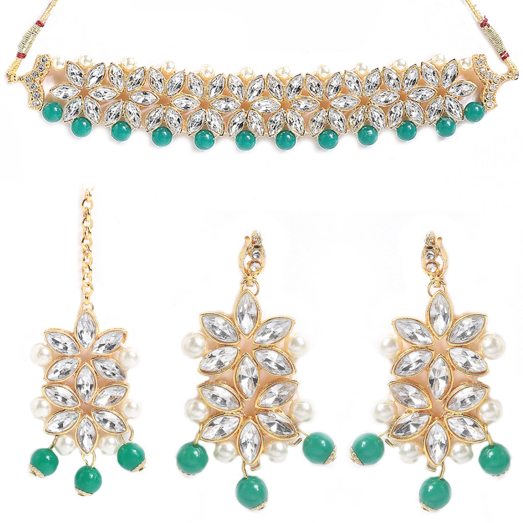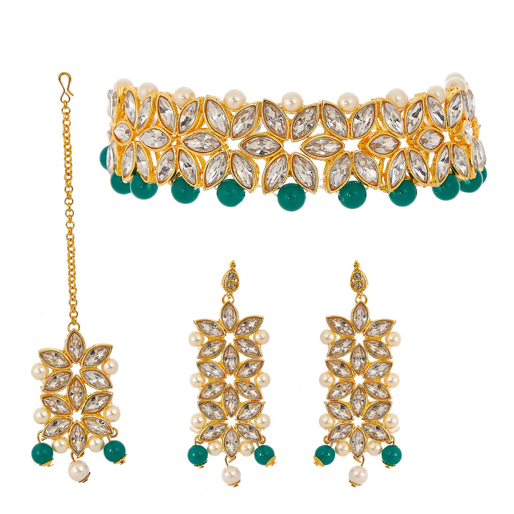 Flower Shaped Choker Bridal Necklace Set With Earrings Maang Tikka
