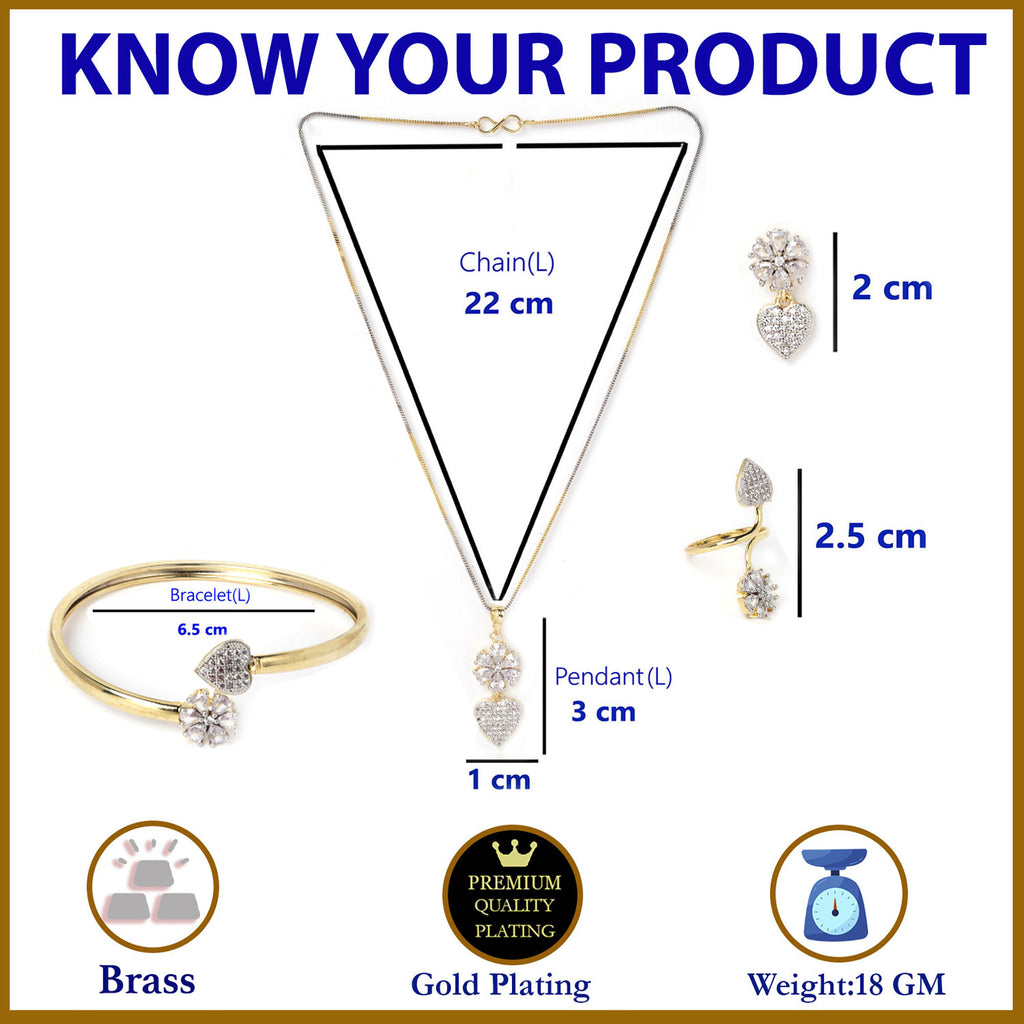 What you get:- 1 Pcs of Pendant, 1 Set of Earrings, 1 Bracelet, 1 Ring