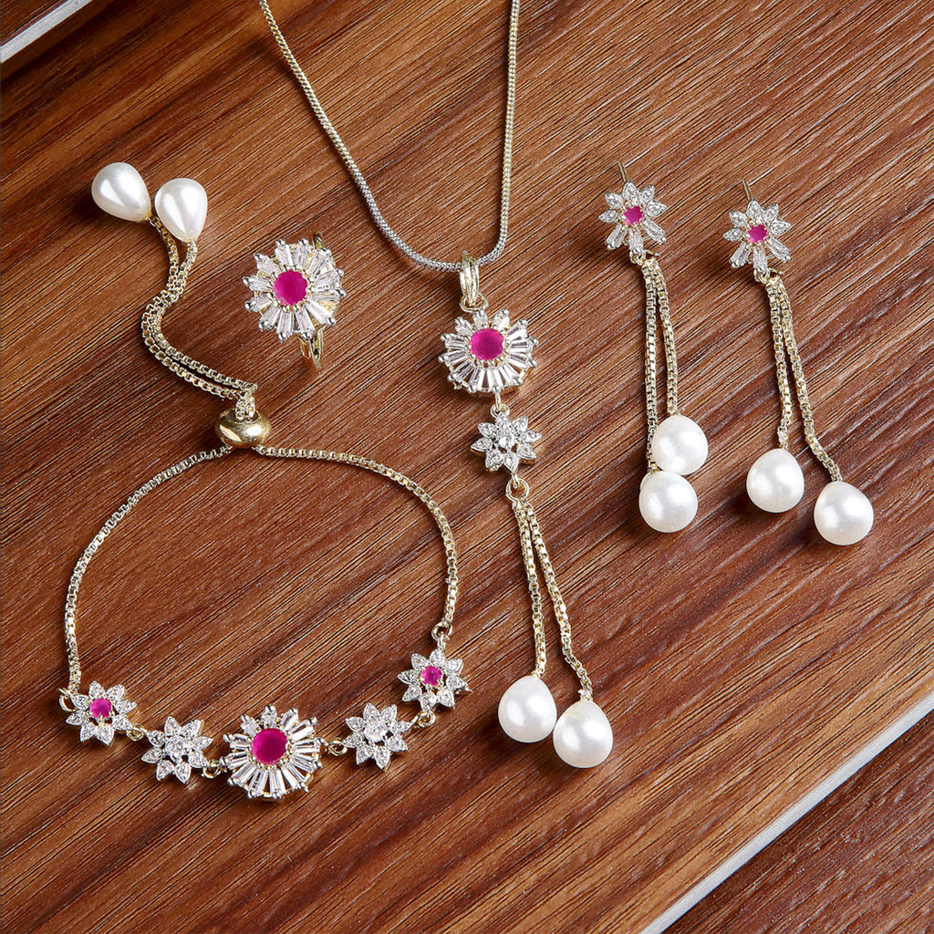 What you get:- 1 Pcs of Pendant, 1 Set of Earrings, 1 Bracelet, 1 Ring