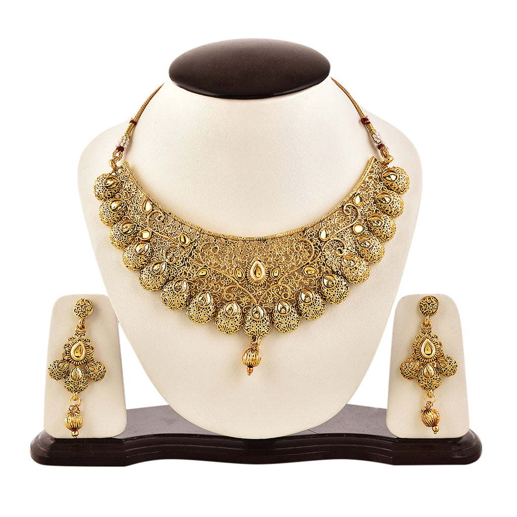 - What you get: 1 Bridal Collar Necklace Set with 1 Pair Of Ethinic Tear Drop Earring & 1 Traditional Maangtikka