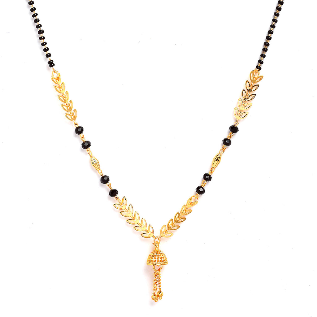 Gold-Plated & Black Beaded Floral Mangalsutra