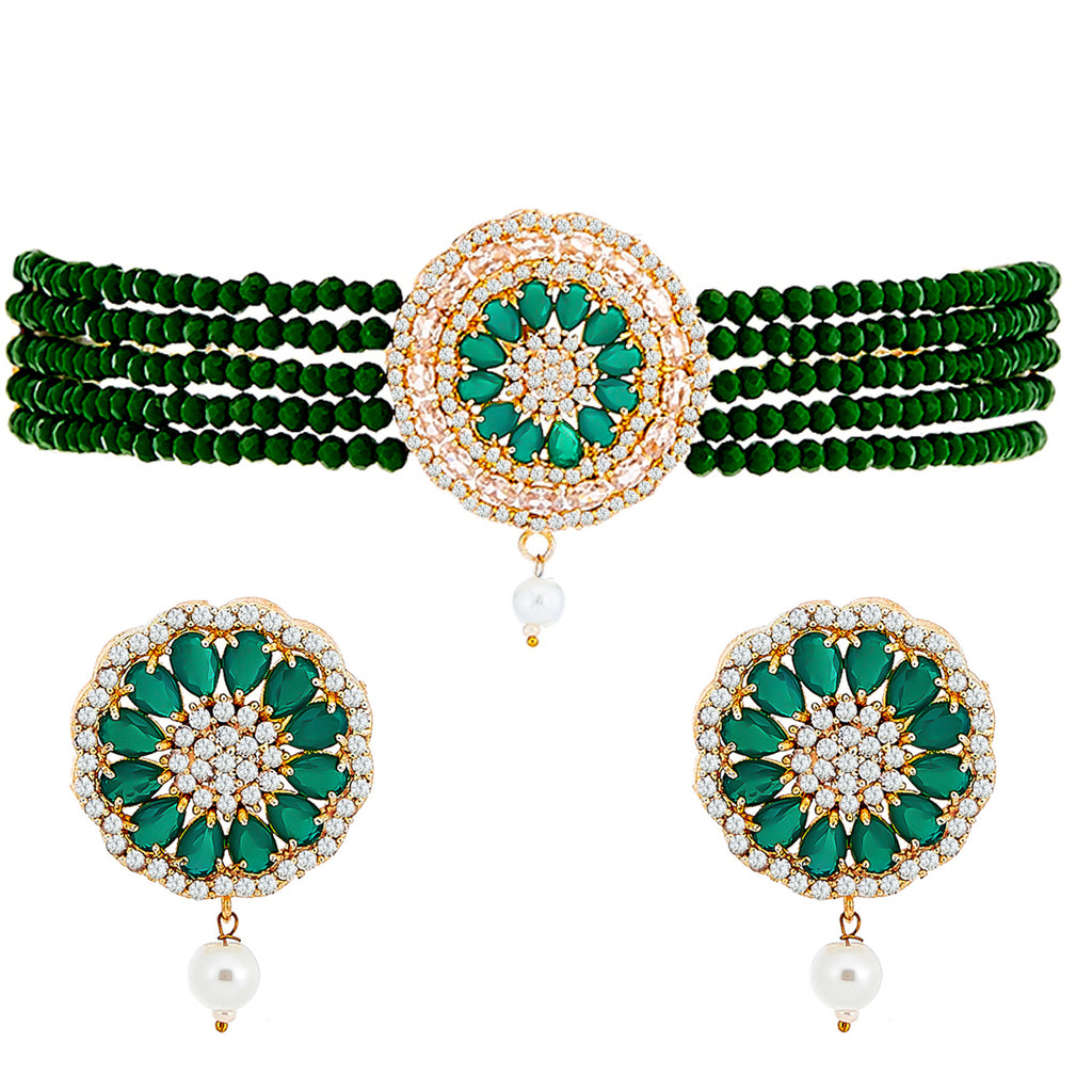 Green & Gold-Plated AD-Studded Beaded Jewellery Set