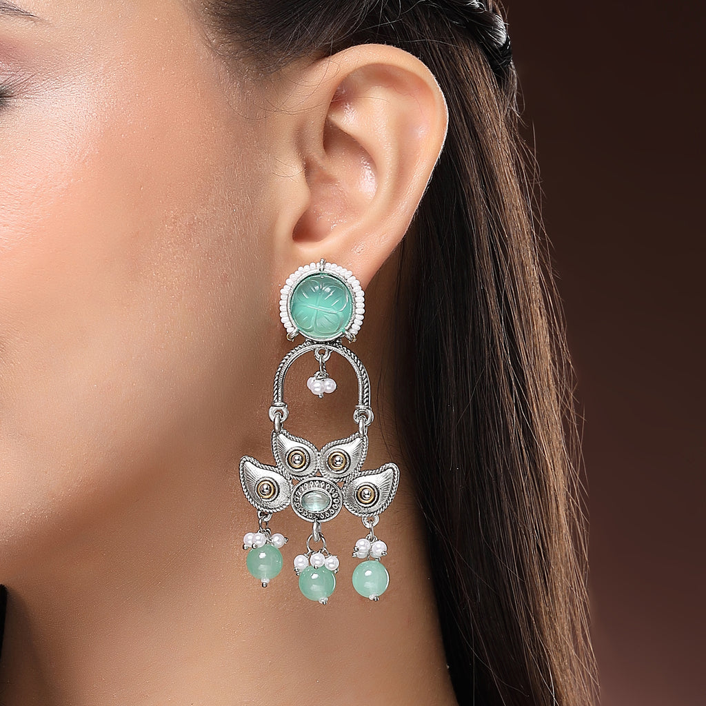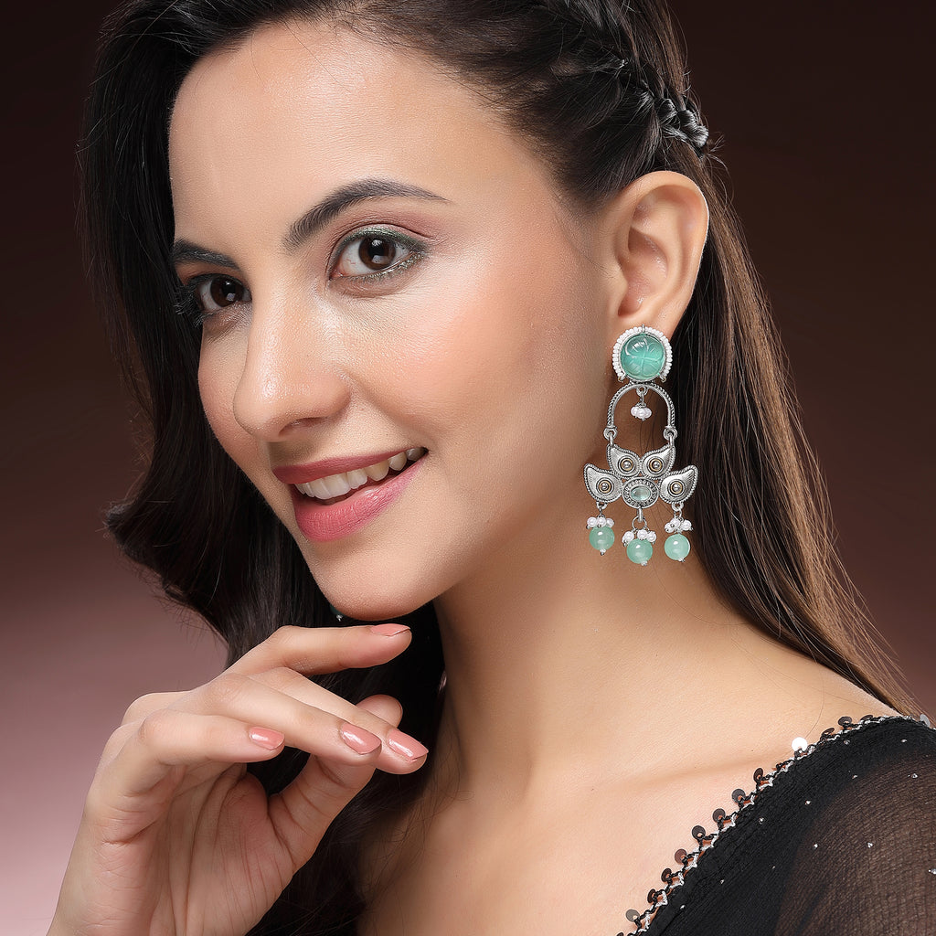 Elegant Design: This Oxidised Earrings detail with Cubic Zirconia and pearls adding a touch of elegance to any look.