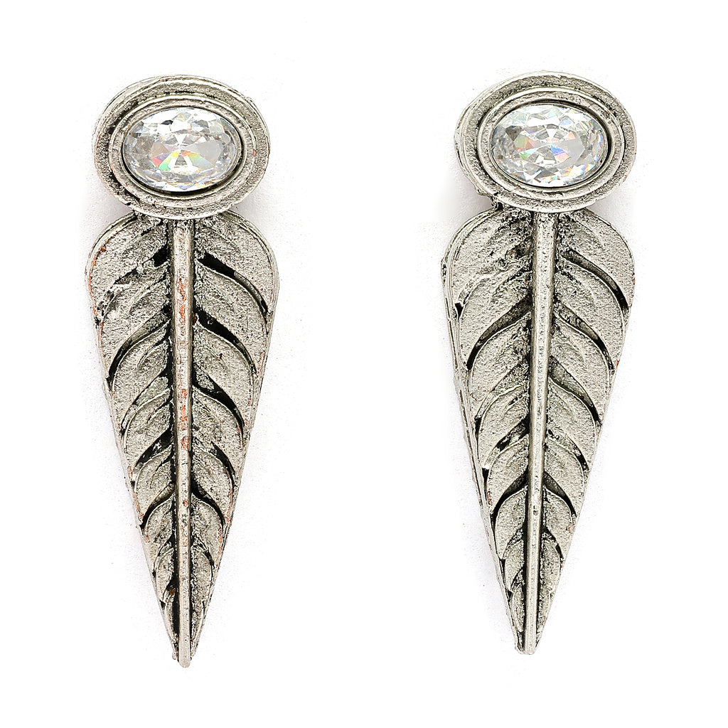 Elegant Design: This Silver-plated Leaf design Cz Studded necklace set boasts a sophisticated traditional design, exuding timeless elegance.