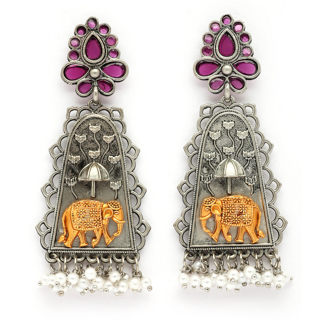 Elegant Design: This Oxidised Dual Toned elephant Shaped Earrings detail with Pearls adding a touch of elegance to any look.