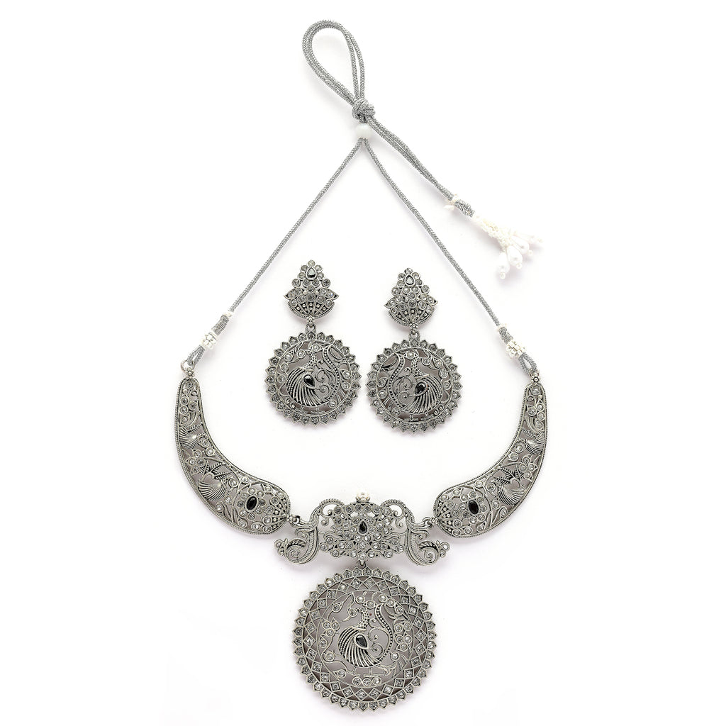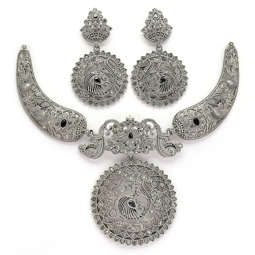 Elegant Design: This Silver-plated peacock design necklace set boasts a sophisticated traditional design, exuding timeless elegance.