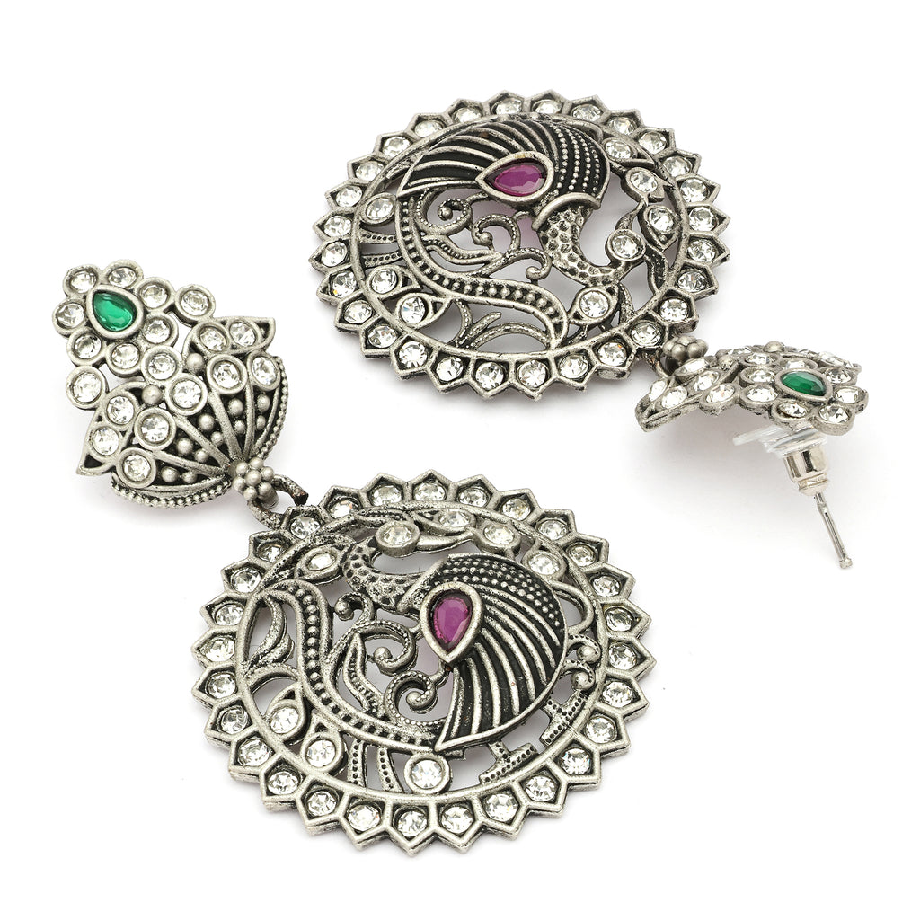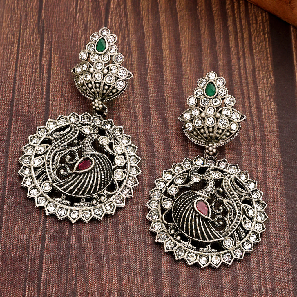 Elegant Design: This Oxidised peacock shaped earrings detail with Cubic Zirconia adding a touch of elegance to any look.