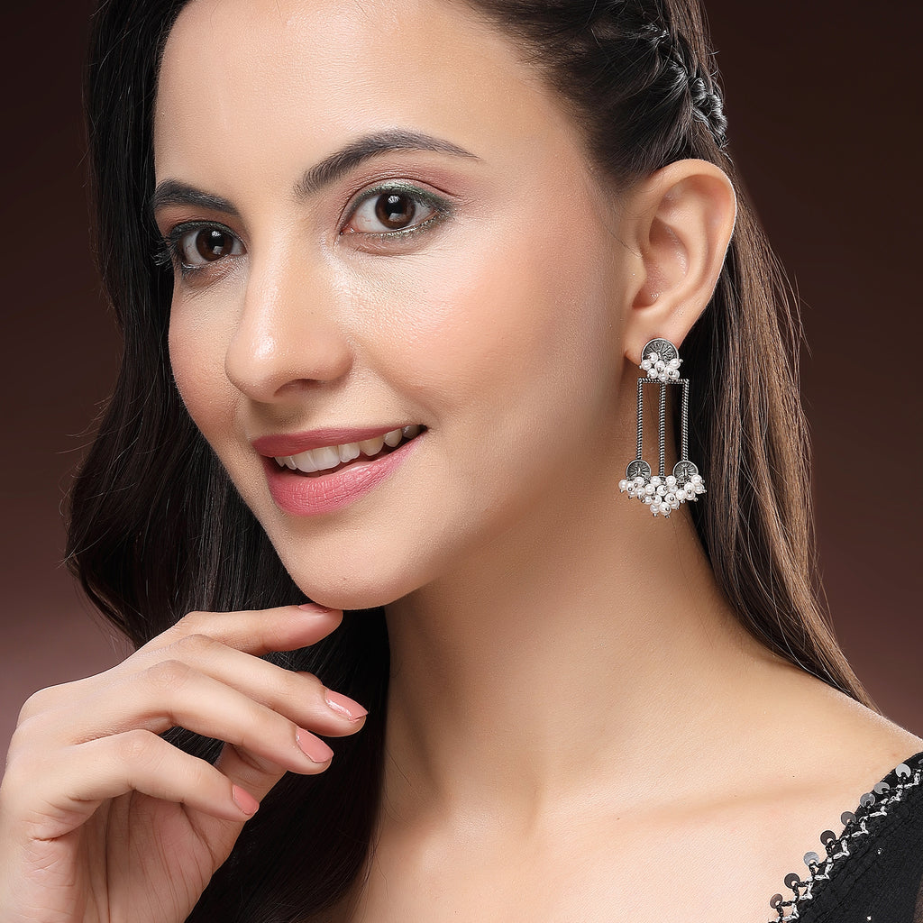 Elegant Design: This Oxidised Silver toned Earrings detail with Pearls adding a touch of elegance to any look.