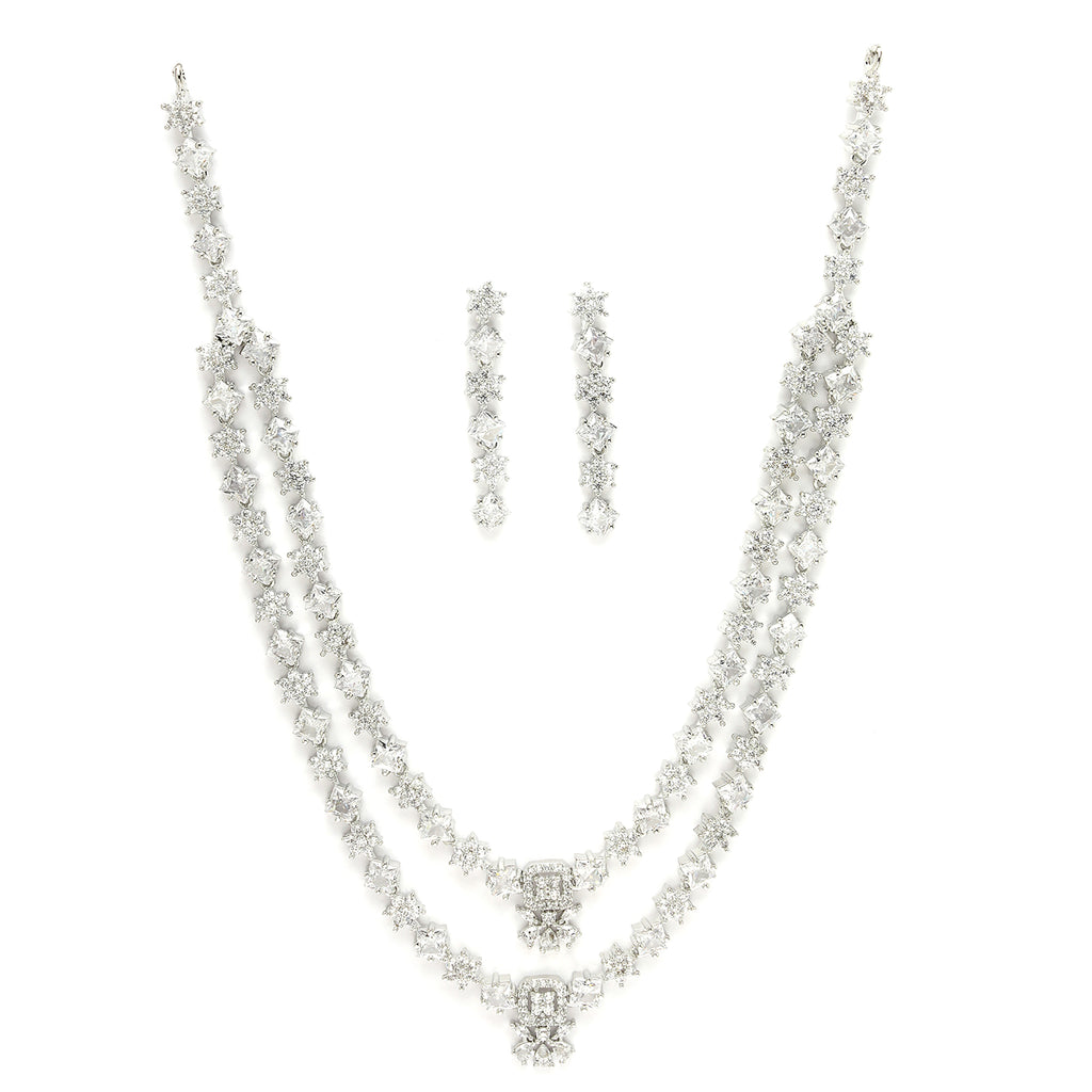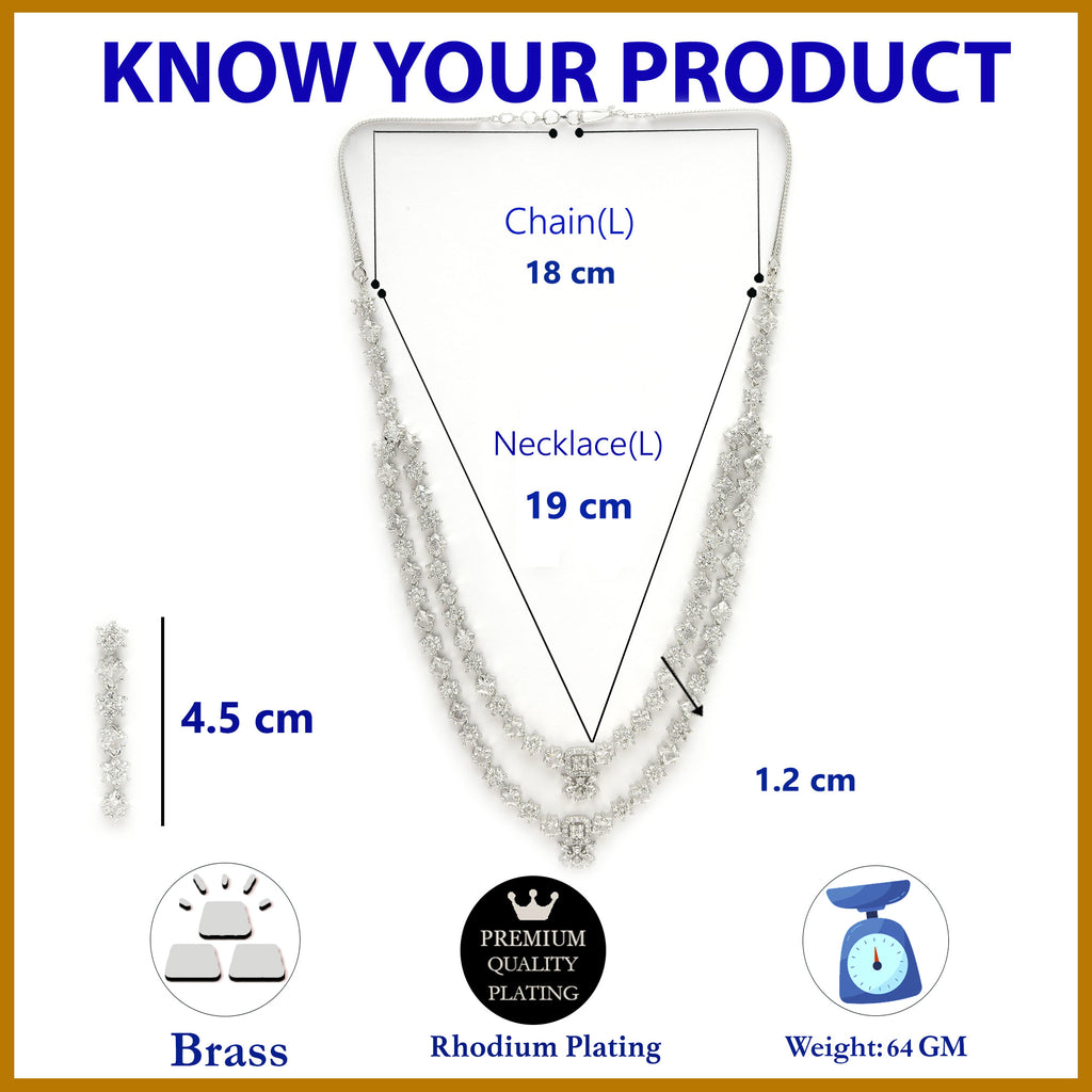 Elegant Layered Royal Design: This exquisite double layer rhodium-plated necklace set is a testament to timeless elegance and contemporary design. Crafted with precision.