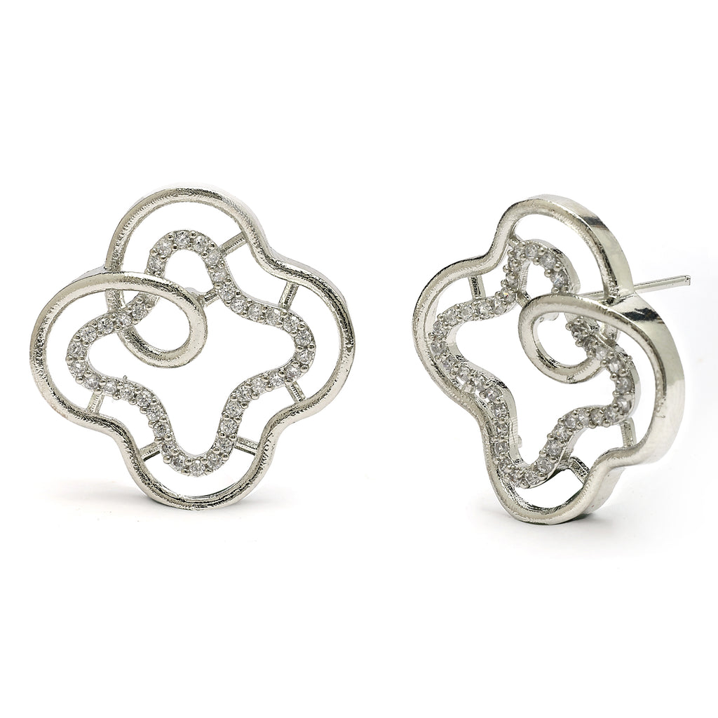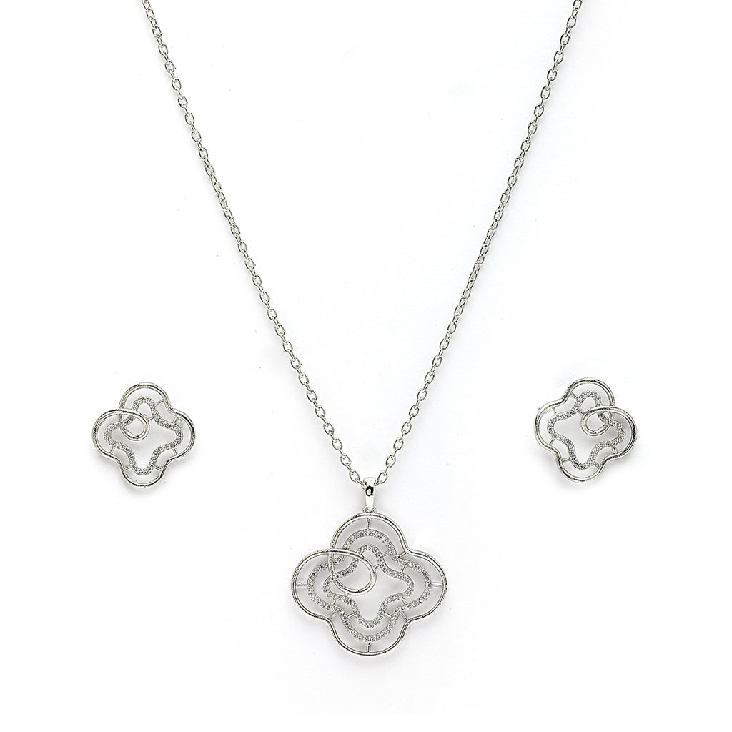 Stylish Clover Design: This rhodium-plated pendant set features a beautifully crafted clover shape adorned with sparkling white American diamonds, creating a sophisticated and timeless look.