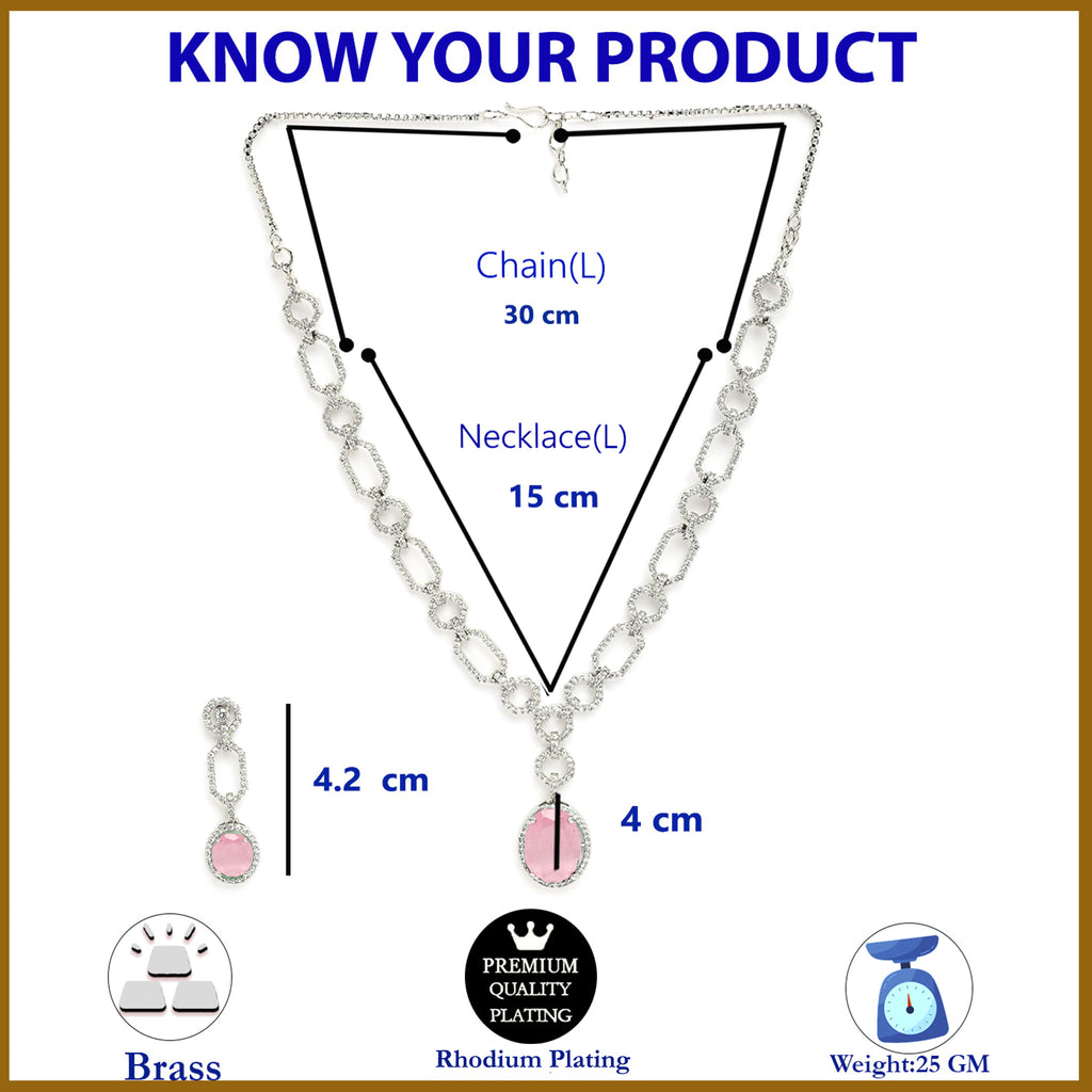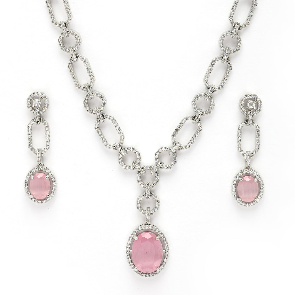 Elegant Design: Rhodium-plated necklace set featuring the sophisticated Dream design with pink American diamonds.