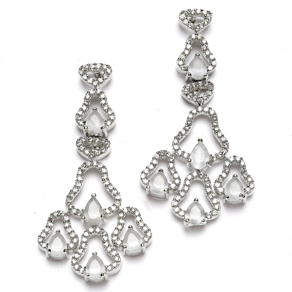 This jewellery set consists of a necklace and a pair of earrings. Rhodium-Plated grey & white american diamond studded quirky design necklace, has secured with a hook closure. A pair of matching drop earrings, each secured with a post and back closure.