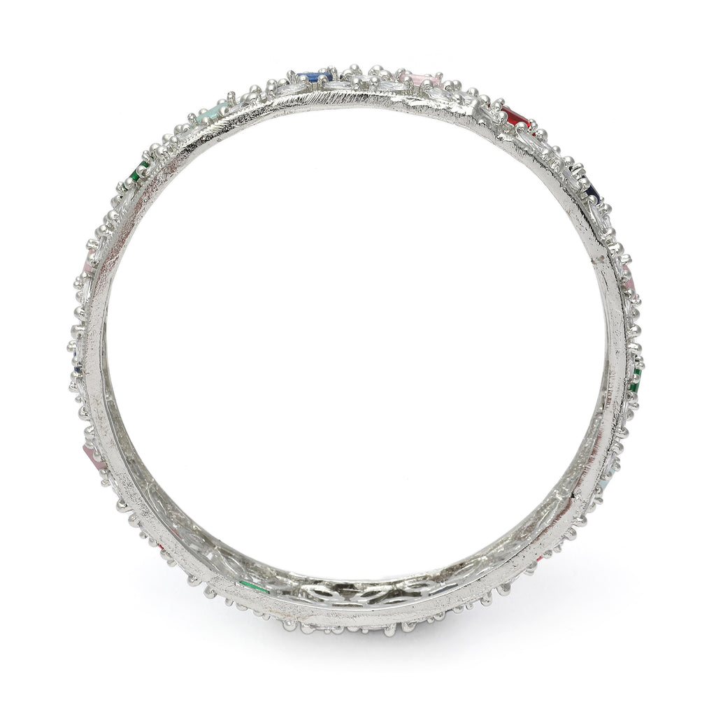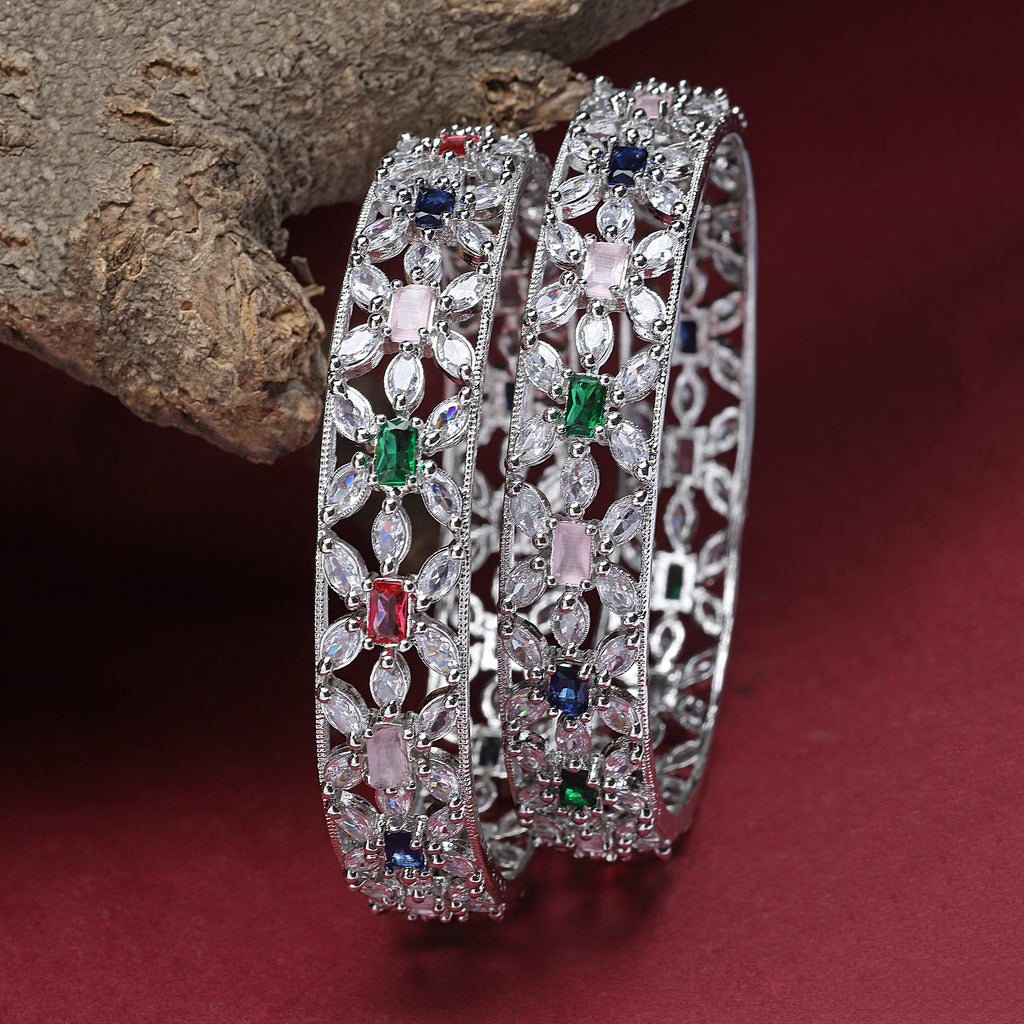 Rhodium-Plated Multi-Colour American Diamond Studded Handcrafted Bangles Set of 2